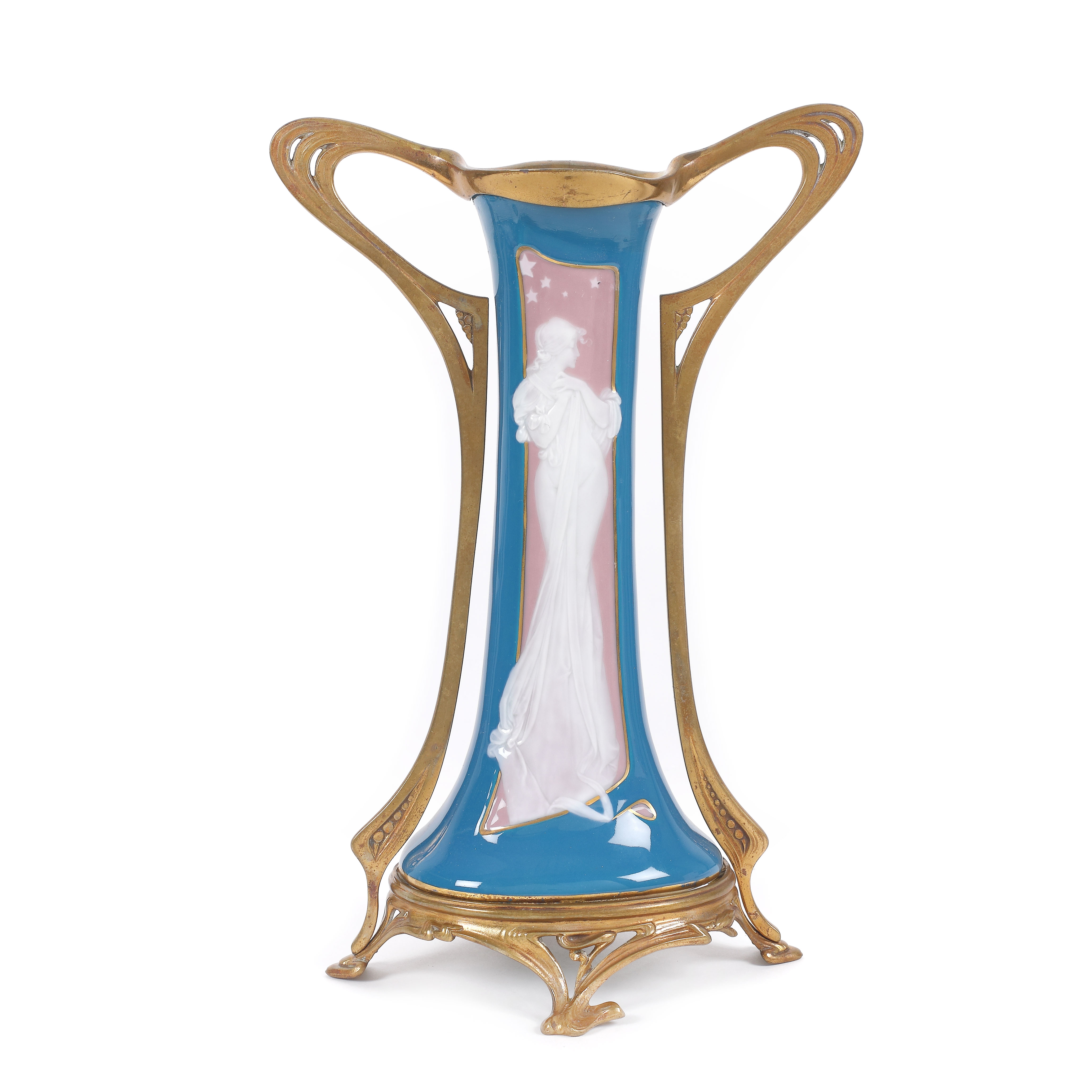 16. Vas Gebrüder Heubach din porțelan, cu montură din bronz, decorat pâte-sur-pâte, cca. 1900