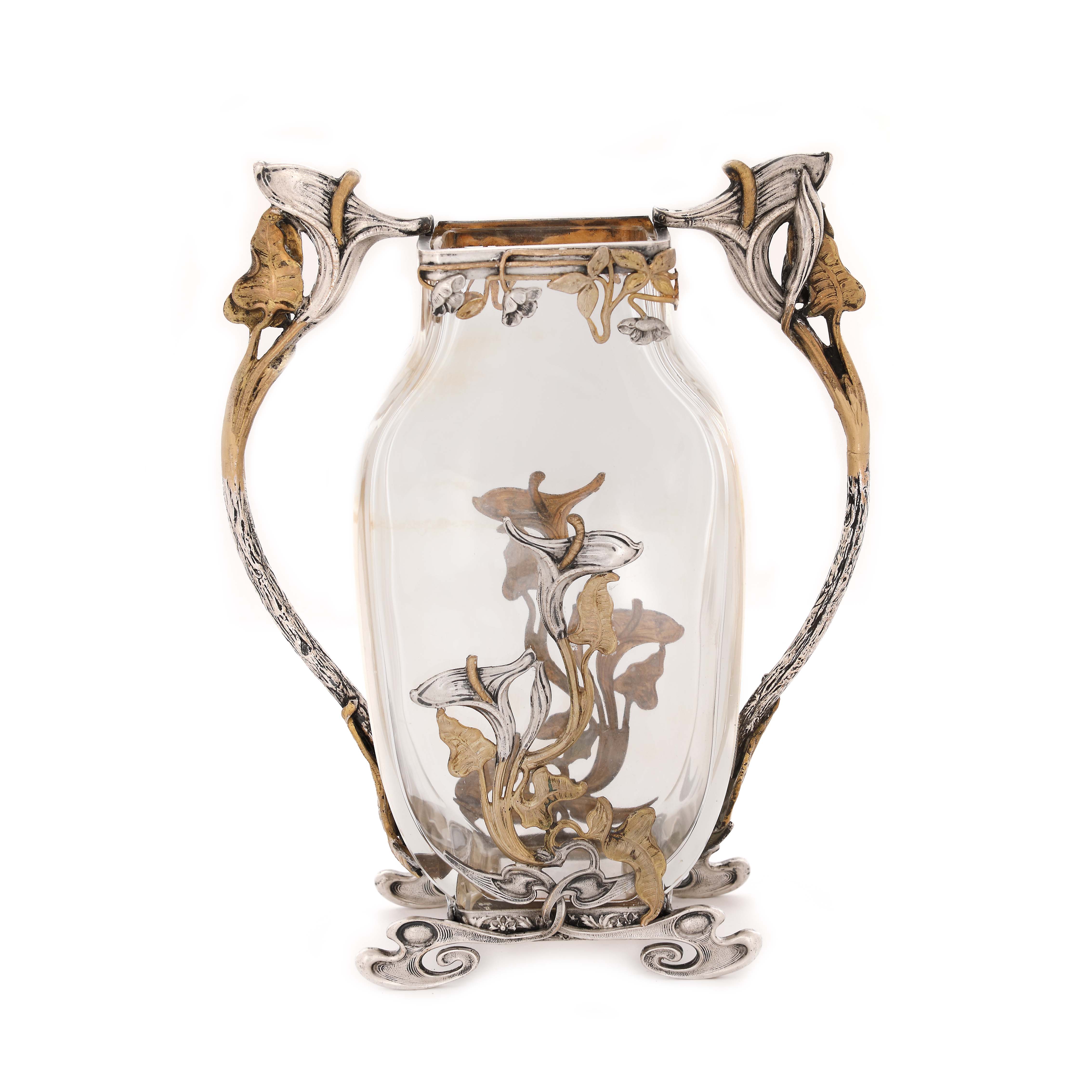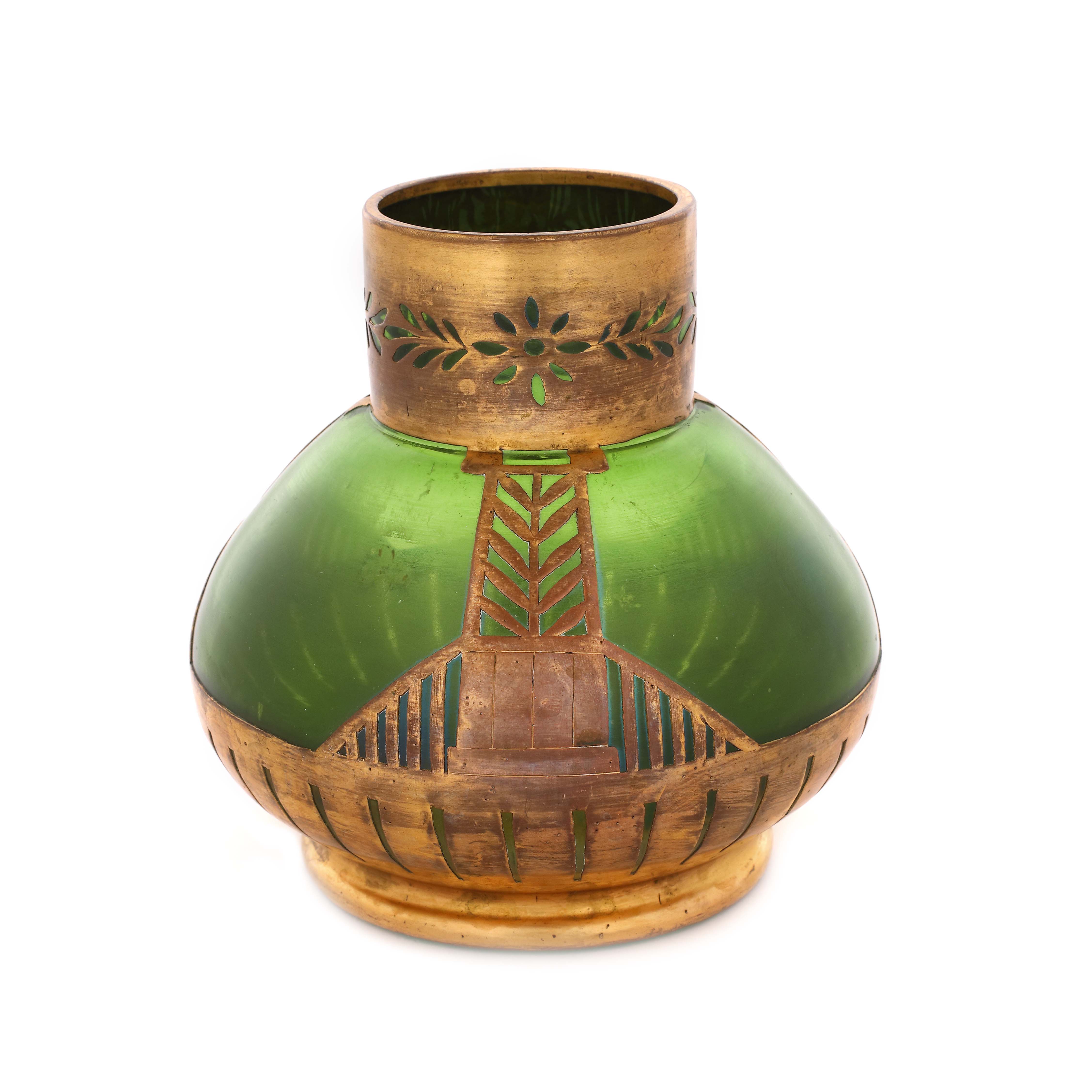 17. Vas Sezession din sticlă, cu montură din cupru, în maniera lui Josef Riedel, cca. 1905