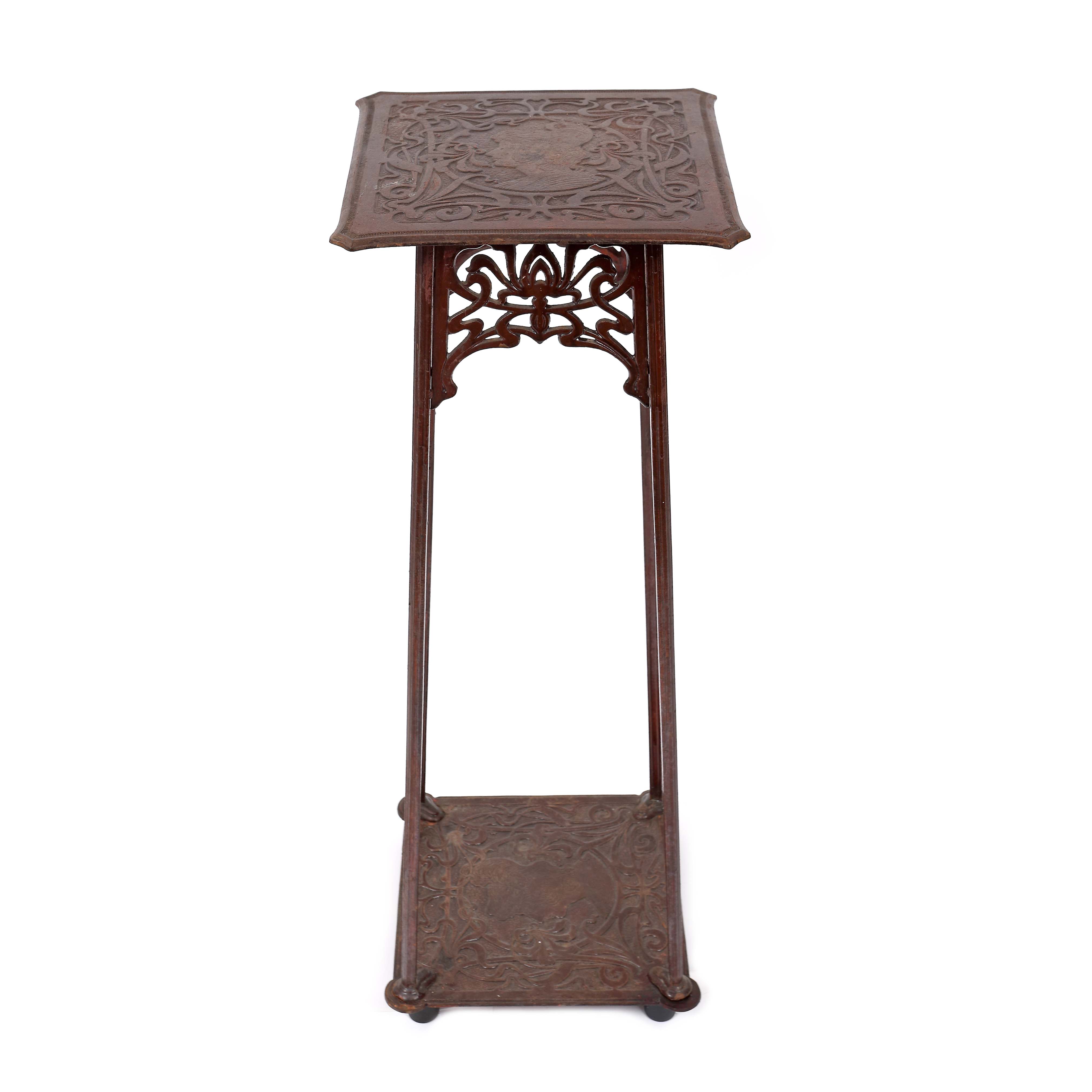 1. Piedestal Art Nouveau din fontă, decorat cu profil de femeie, cca. 1910