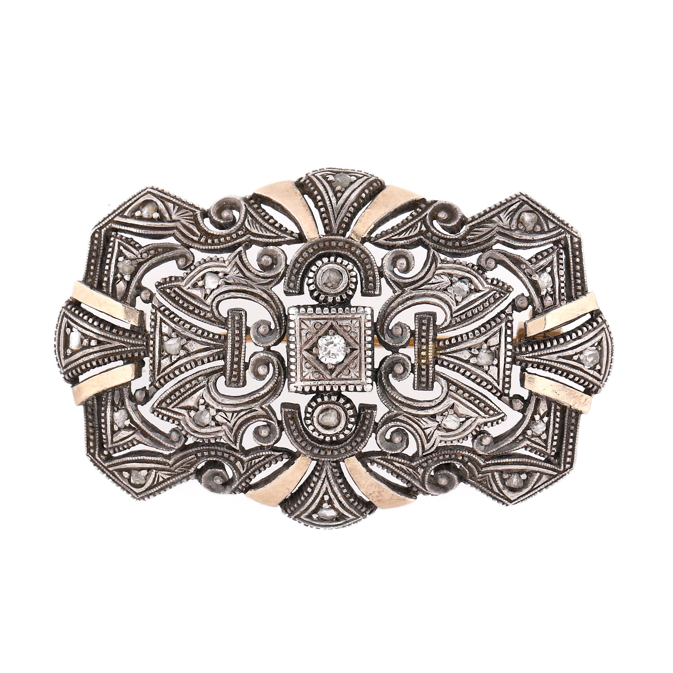 9. Broșă din aur și argint, decorată cu diamante