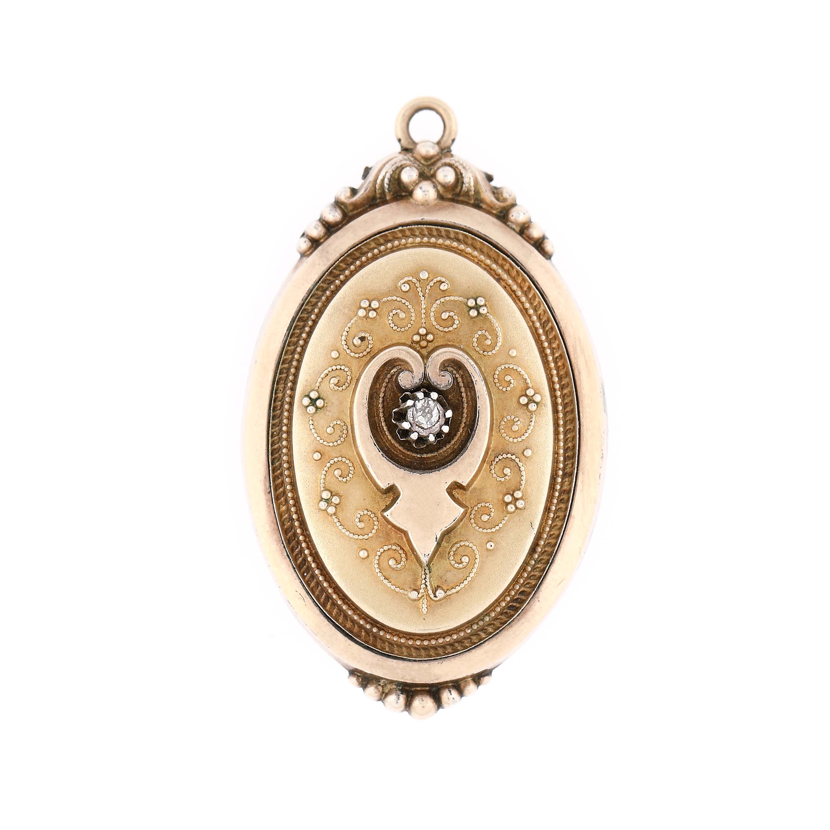 7. Broșă-medalion, din aur, ornată cu diamant, cca. 1900
