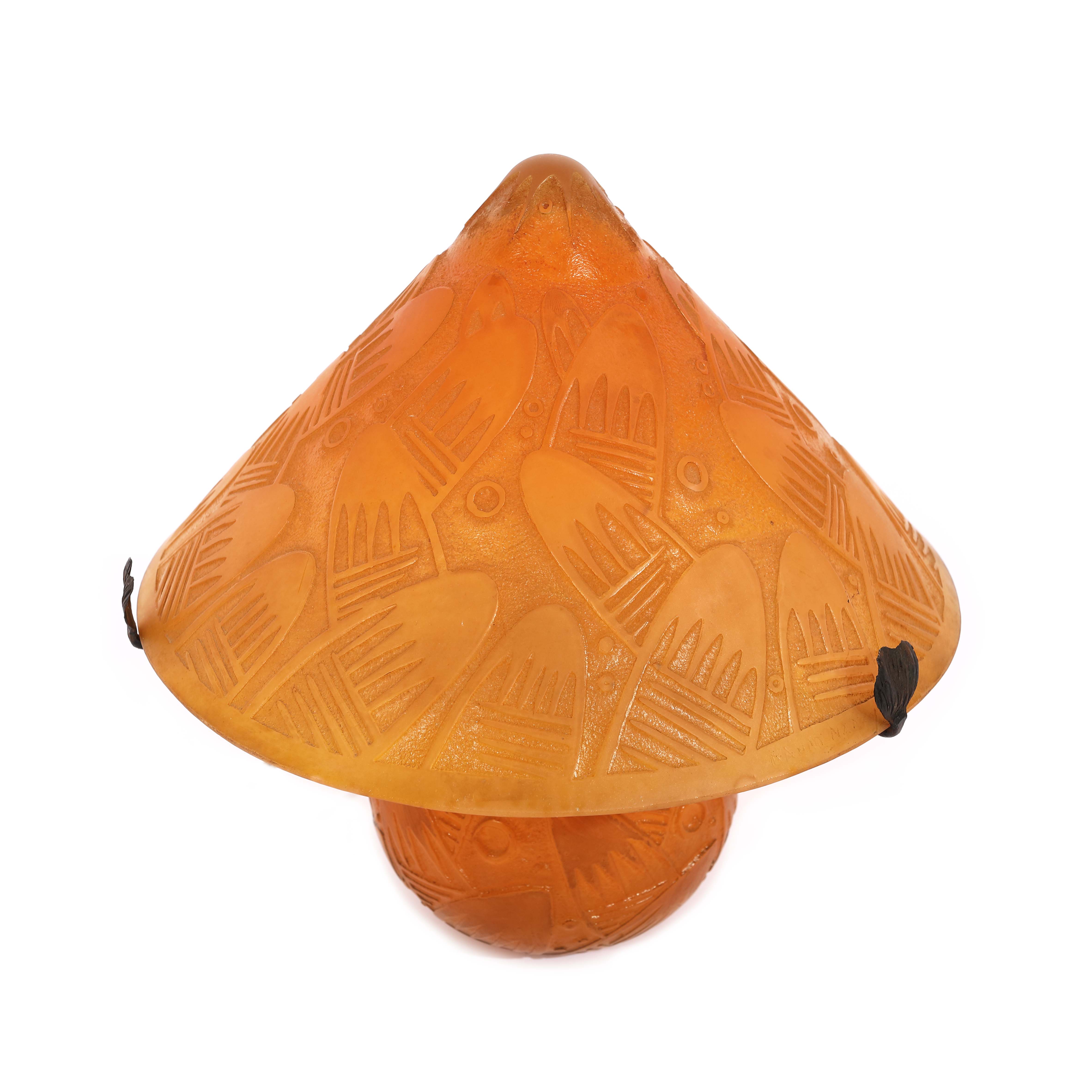26. "Chapeau chinois" - lampă Art Deco, design în manieră Daum Nancy, cu decor geometric, cca. 1930