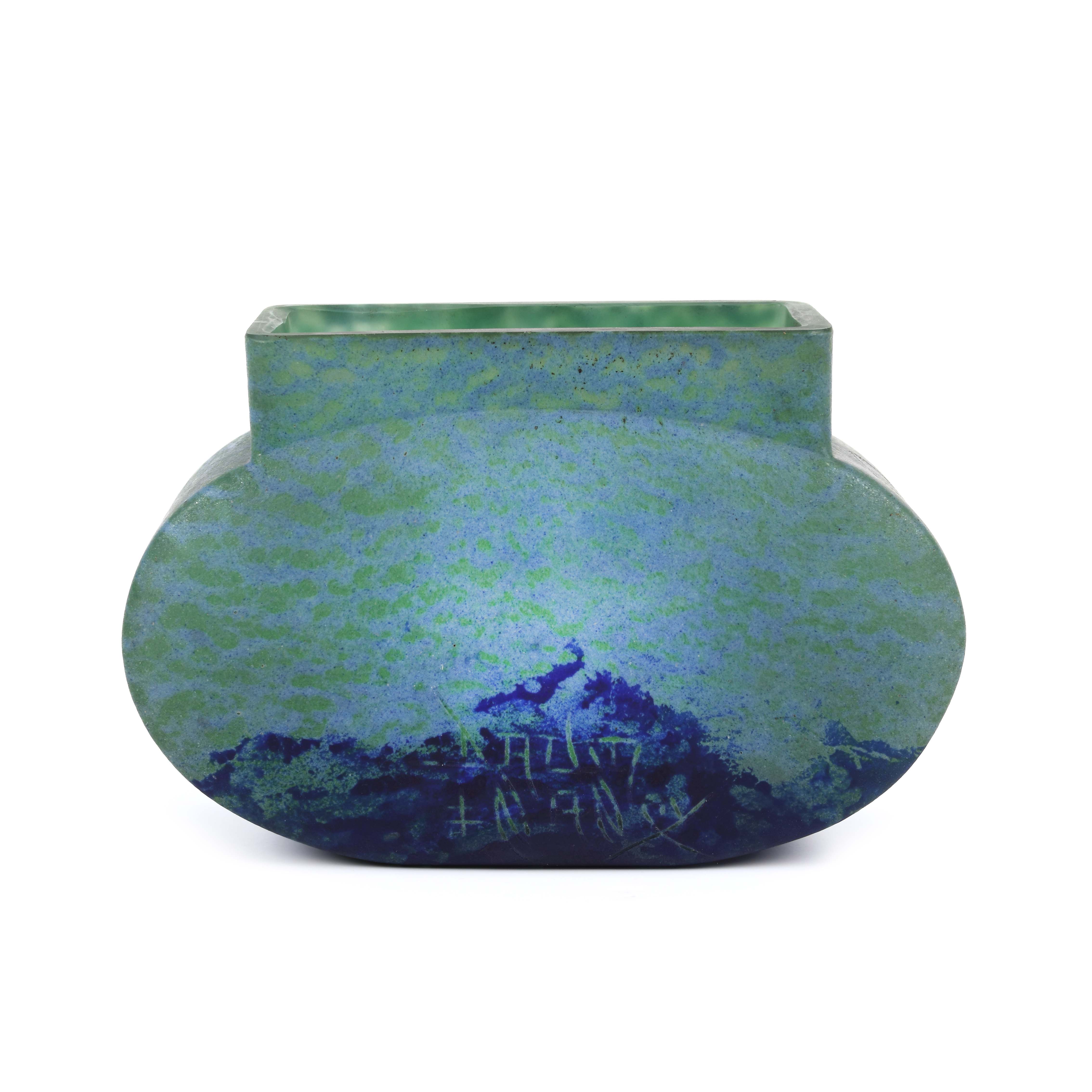20. Vas Daum Nancy "pillow vase", din sticlă stratificată, cca. 1930