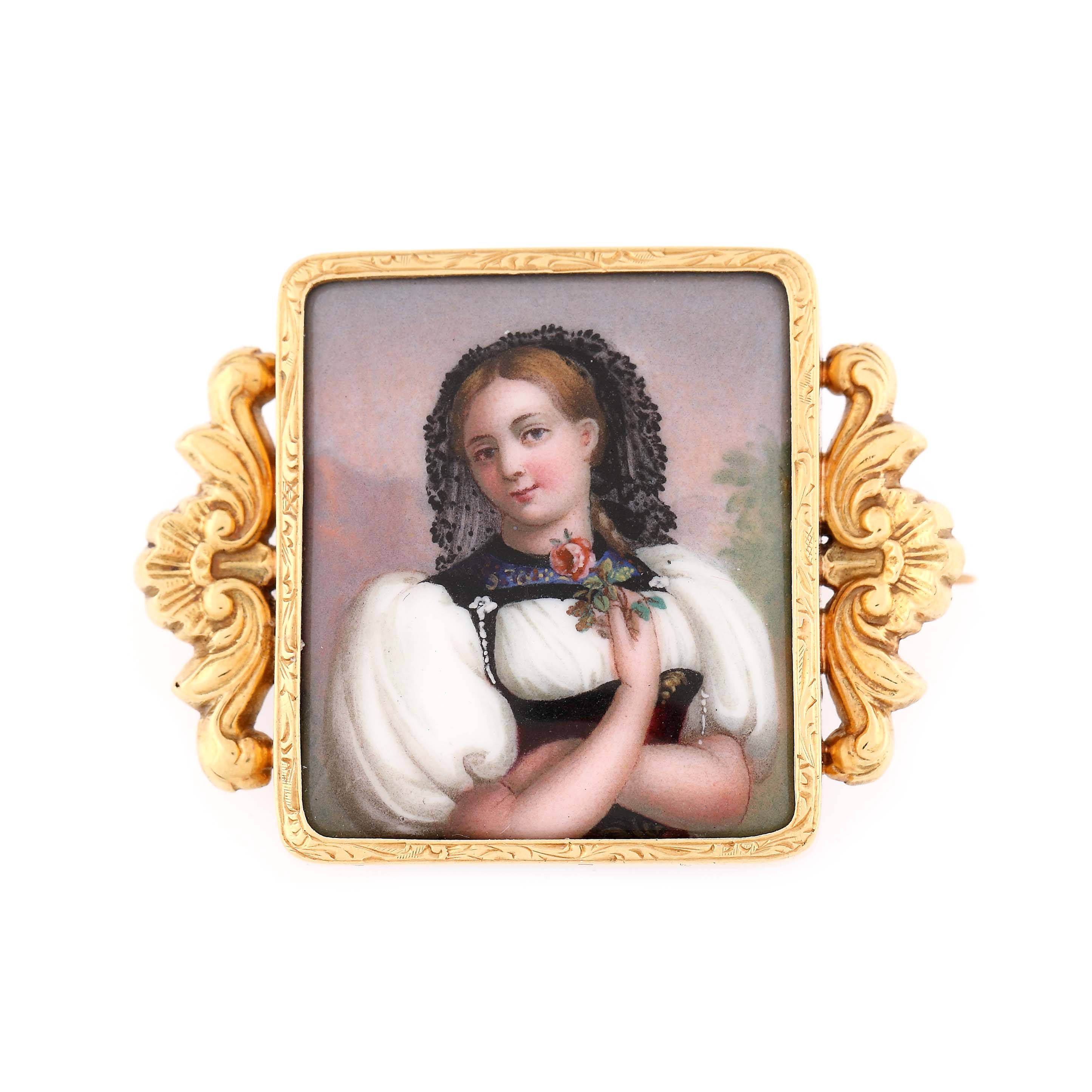 13. Broșă din aur, pictată cu email, cca. 1880