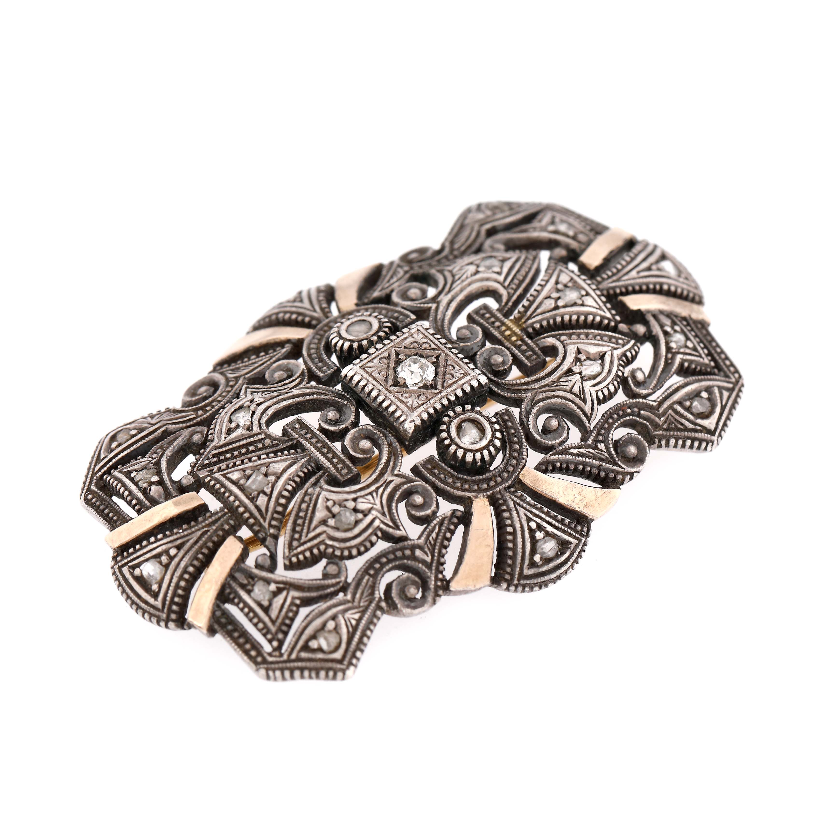 19 diamante (1 old mine cut, 18 rose cut), culoare I-K, claritate SI-I2, cca. 0,1 ct.