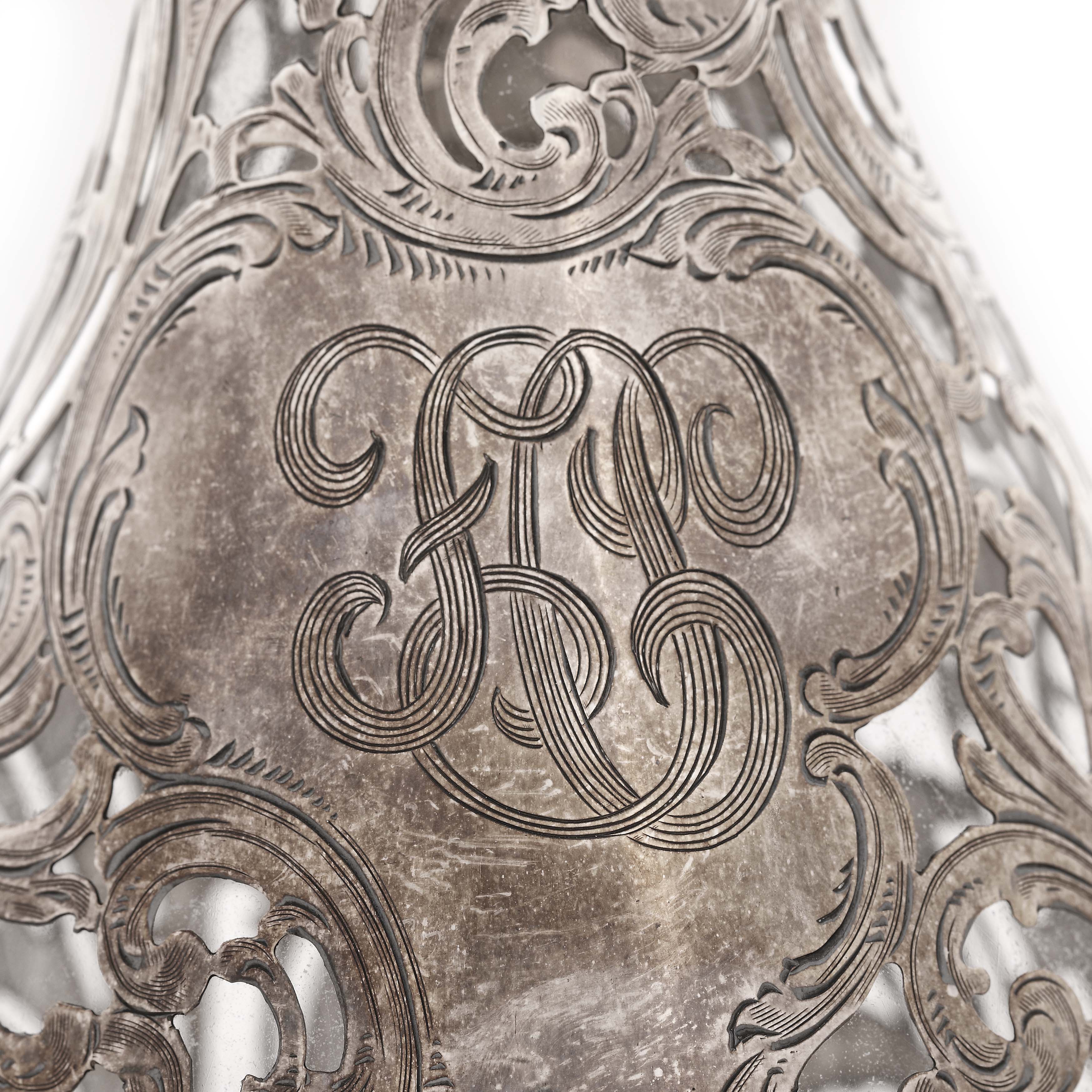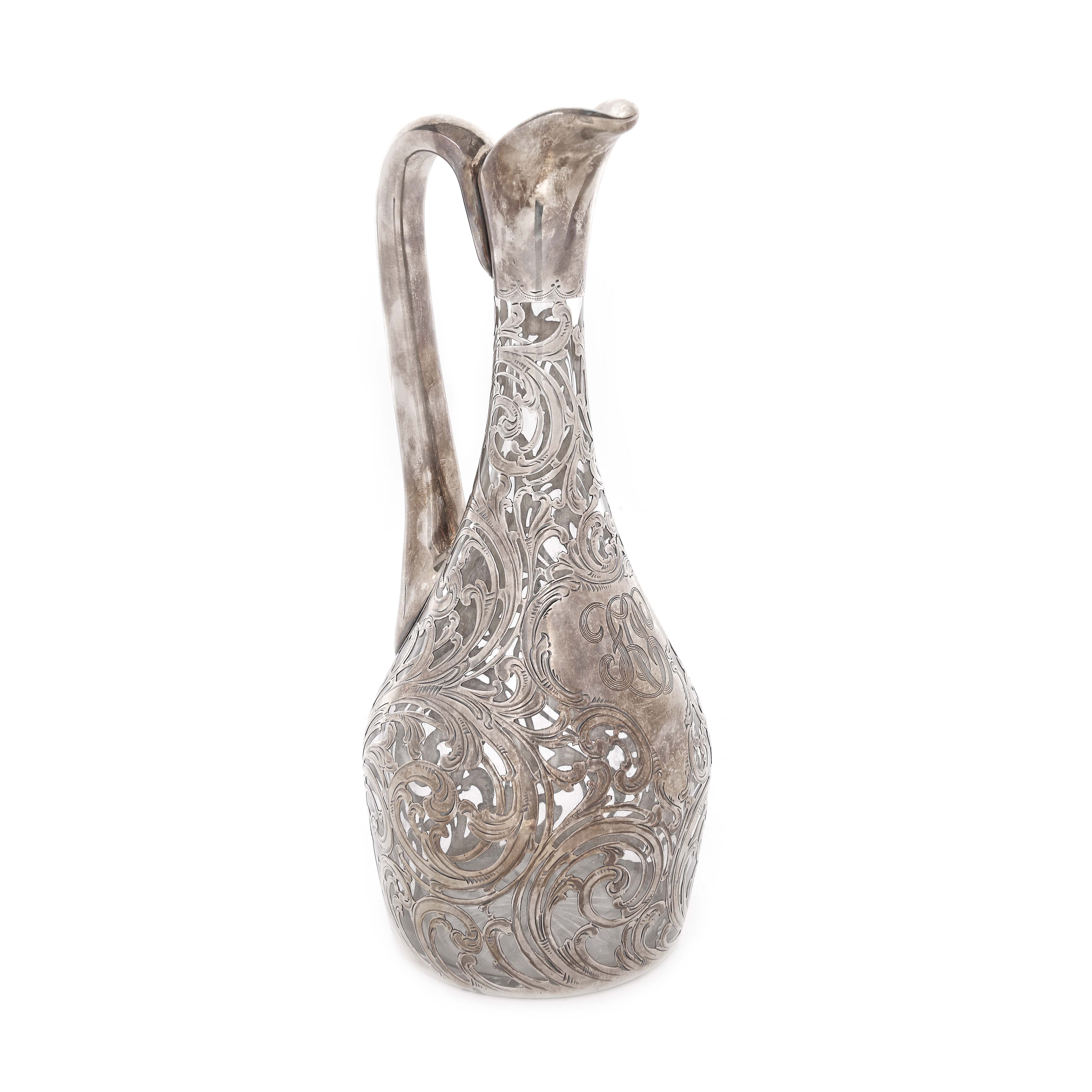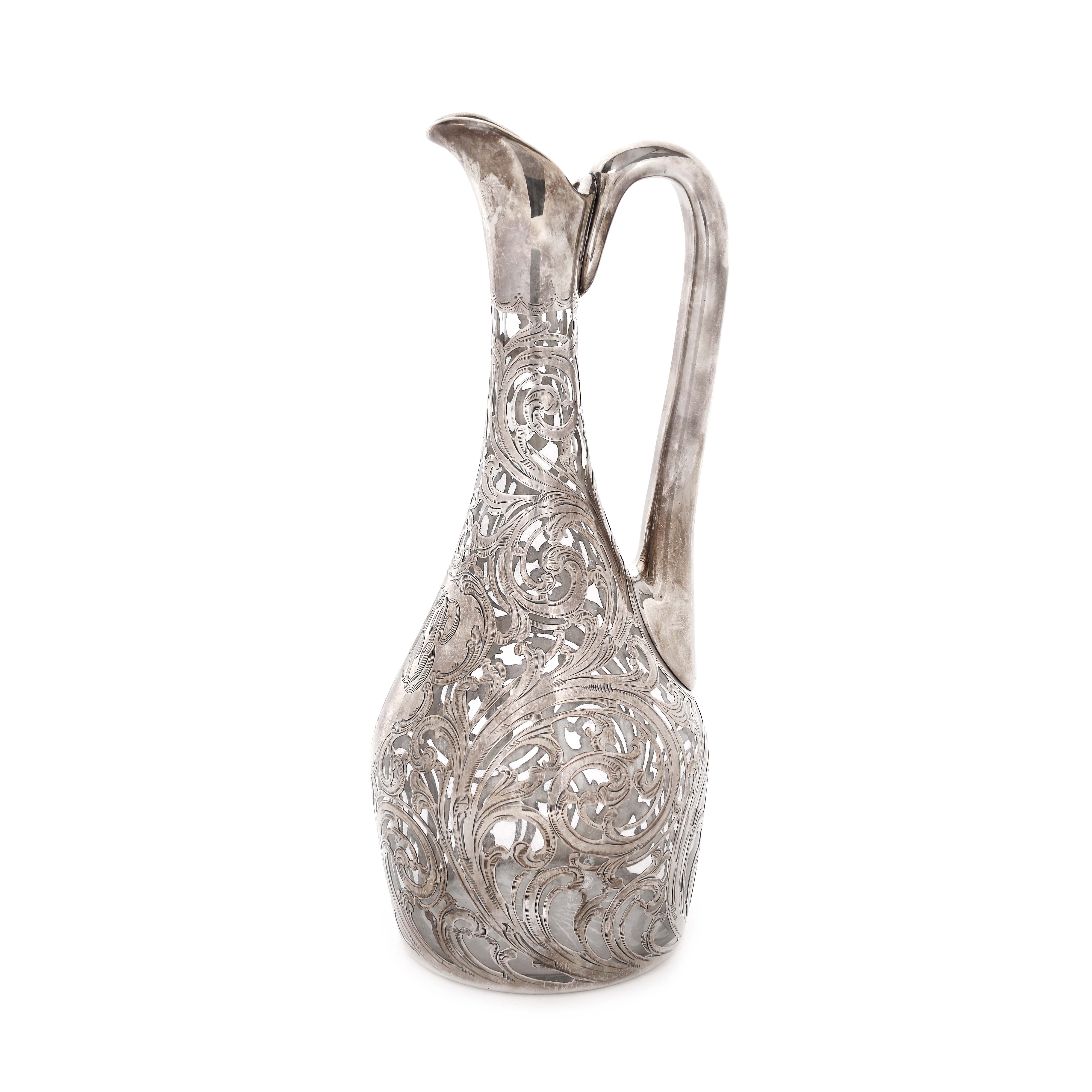 42. Carafă Alvin, Art Nouveau, cu decor din argint sub forma unor vrejuri vegetale, cca. 1900-1910