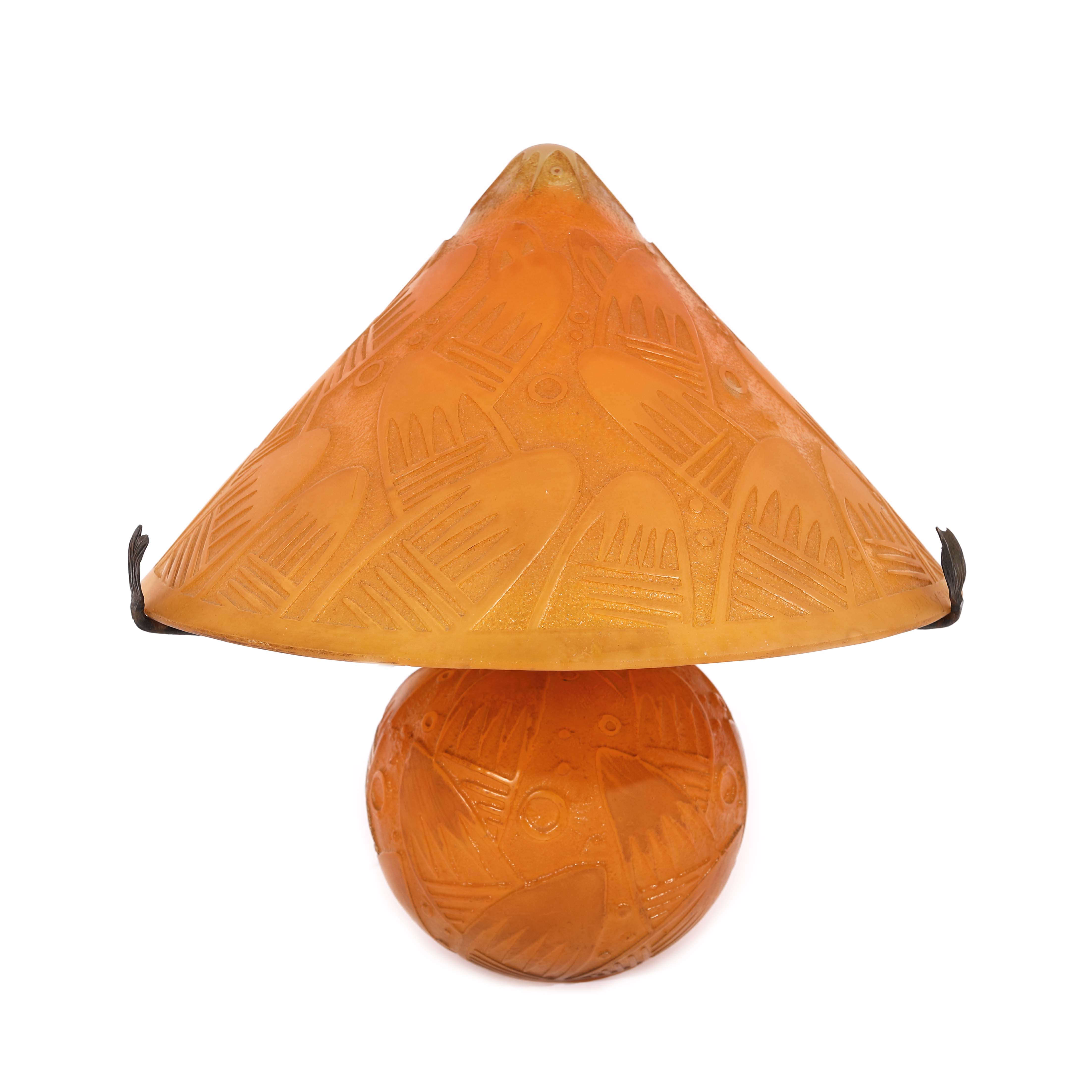 26. "Chapeau chinois" - lampă Art Deco, design în manieră Daum Nancy, cu decor geometric, cca. 1930