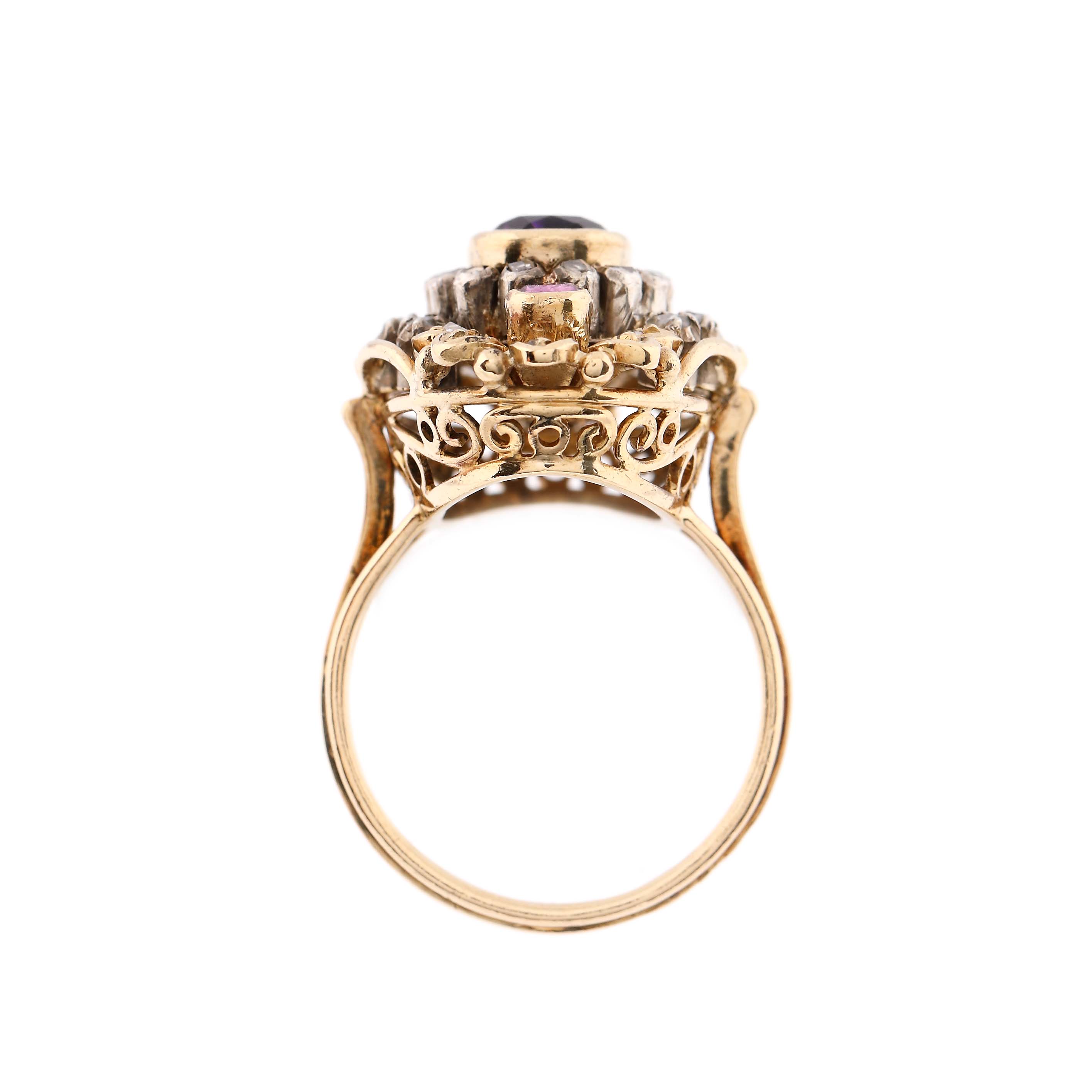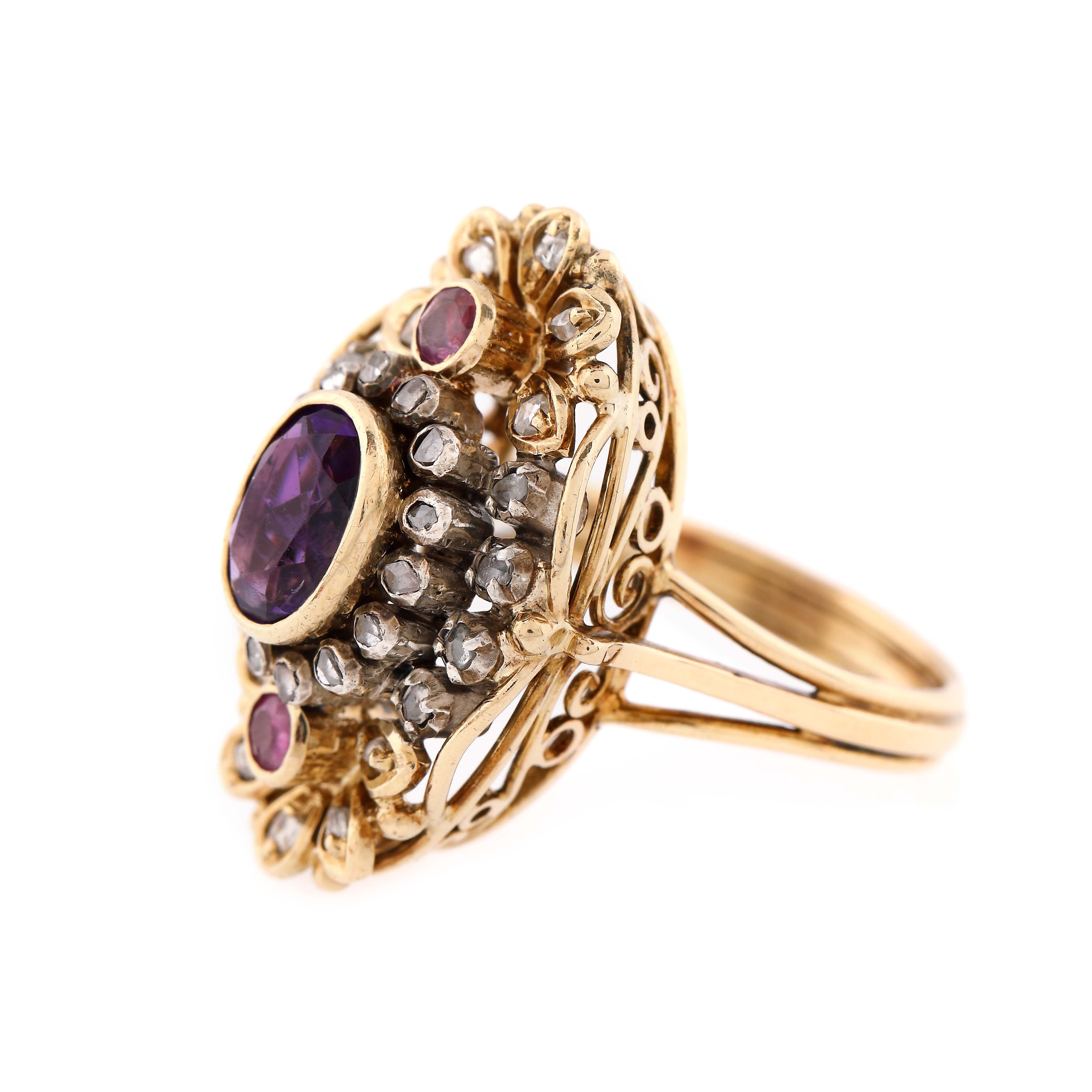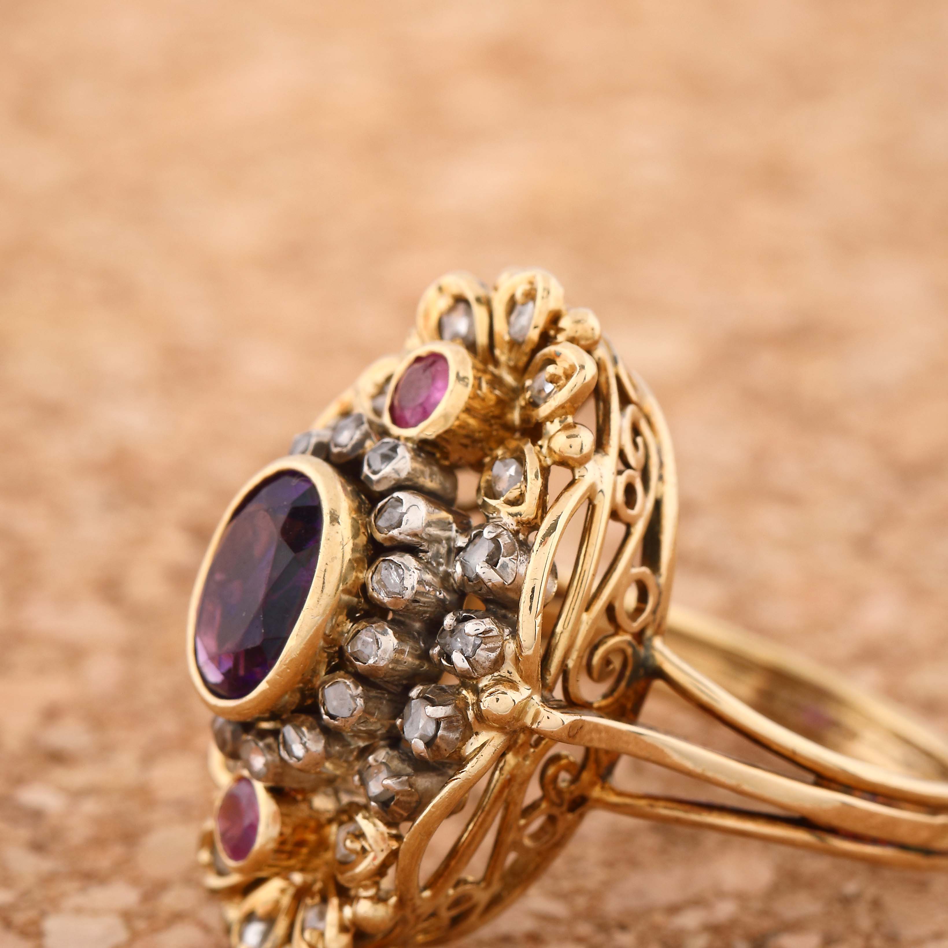 10. Inel din aur și argint, decorat cu ametist, rubine și diamante