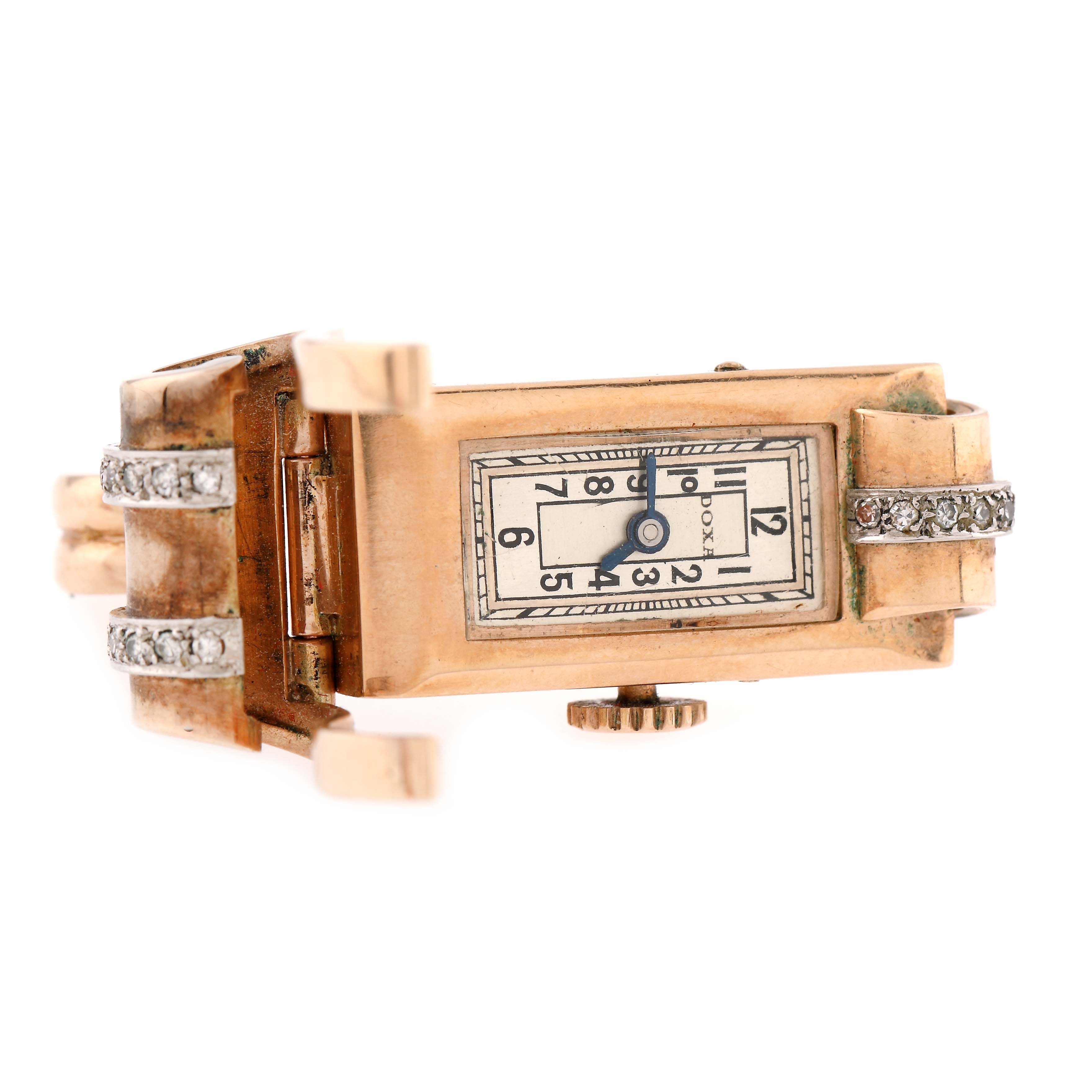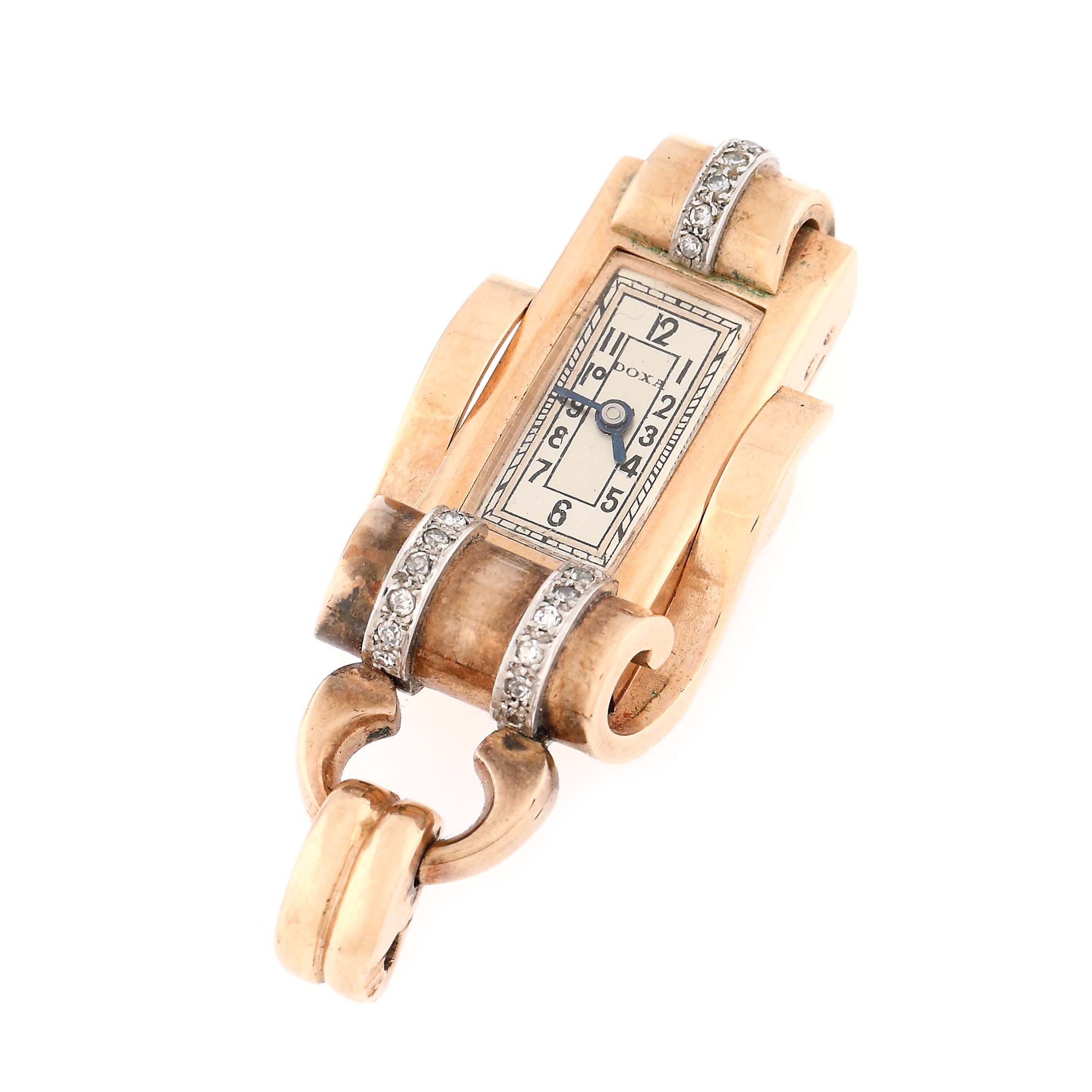 52. Pandantiv-ceas Doxa din aur și platină, ornat cu diamante, cca. 1920