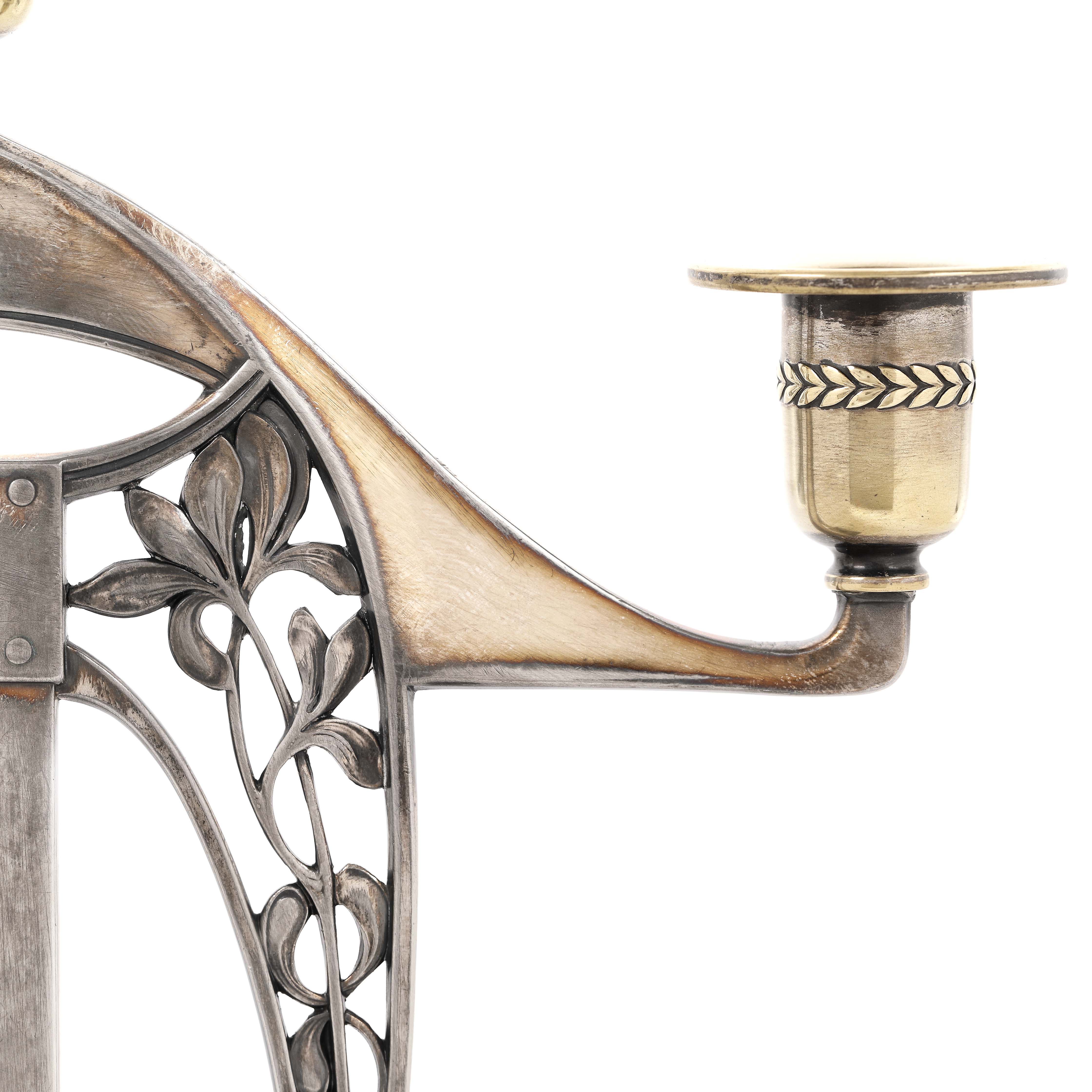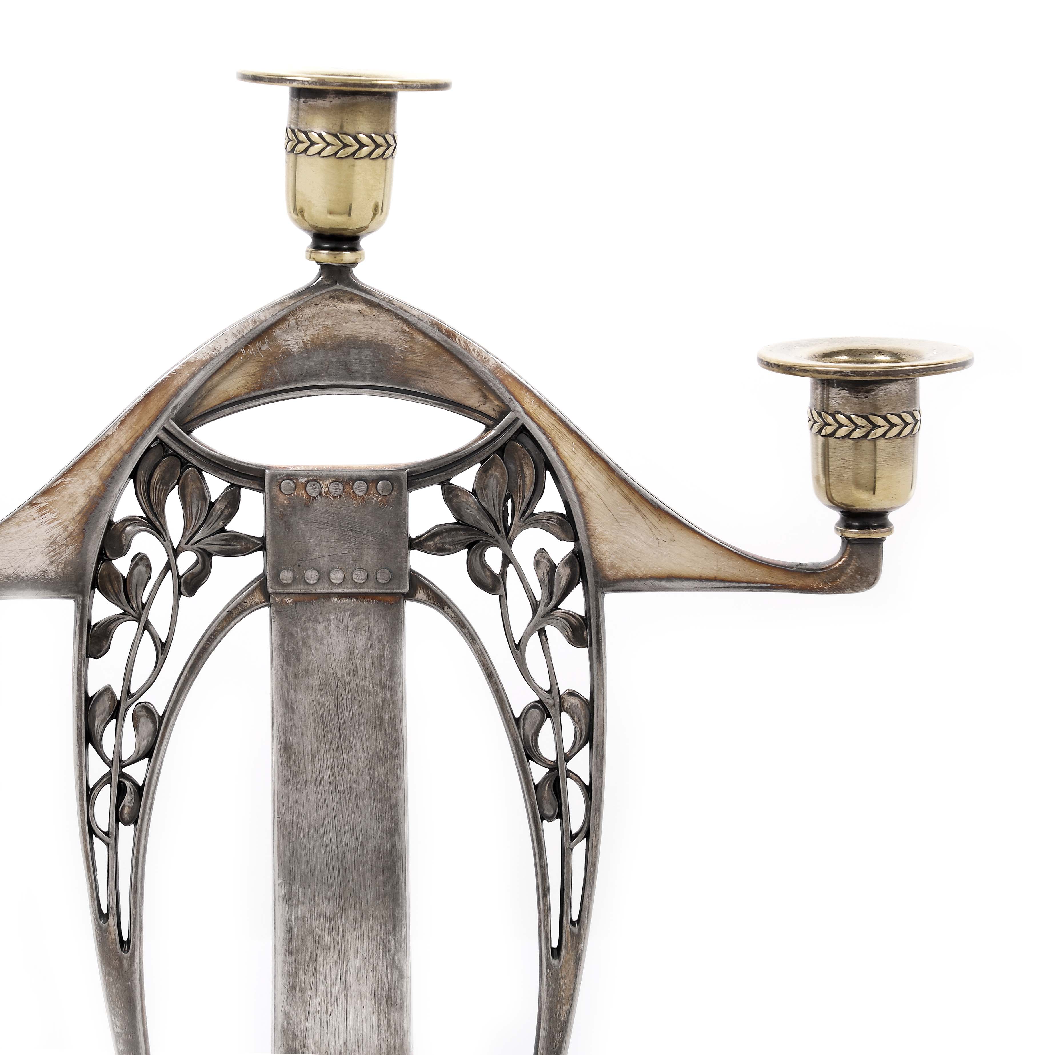 31. Pereche de sfeșnice WMF, Sezession, cu trei lumini, cca. 1900-1909