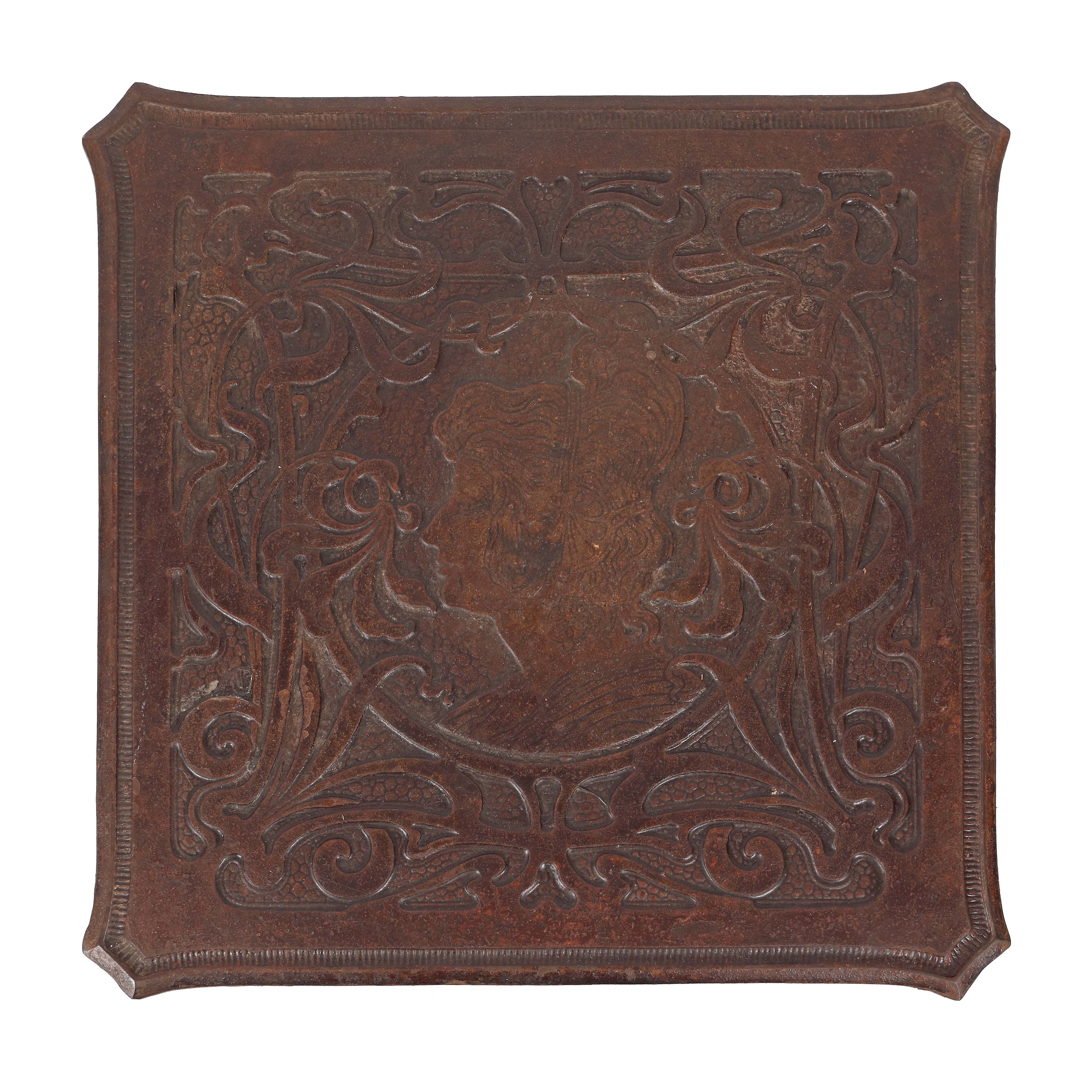 1. Piedestal Art Nouveau din fontă, decorat cu profil de femeie, cca. 1910