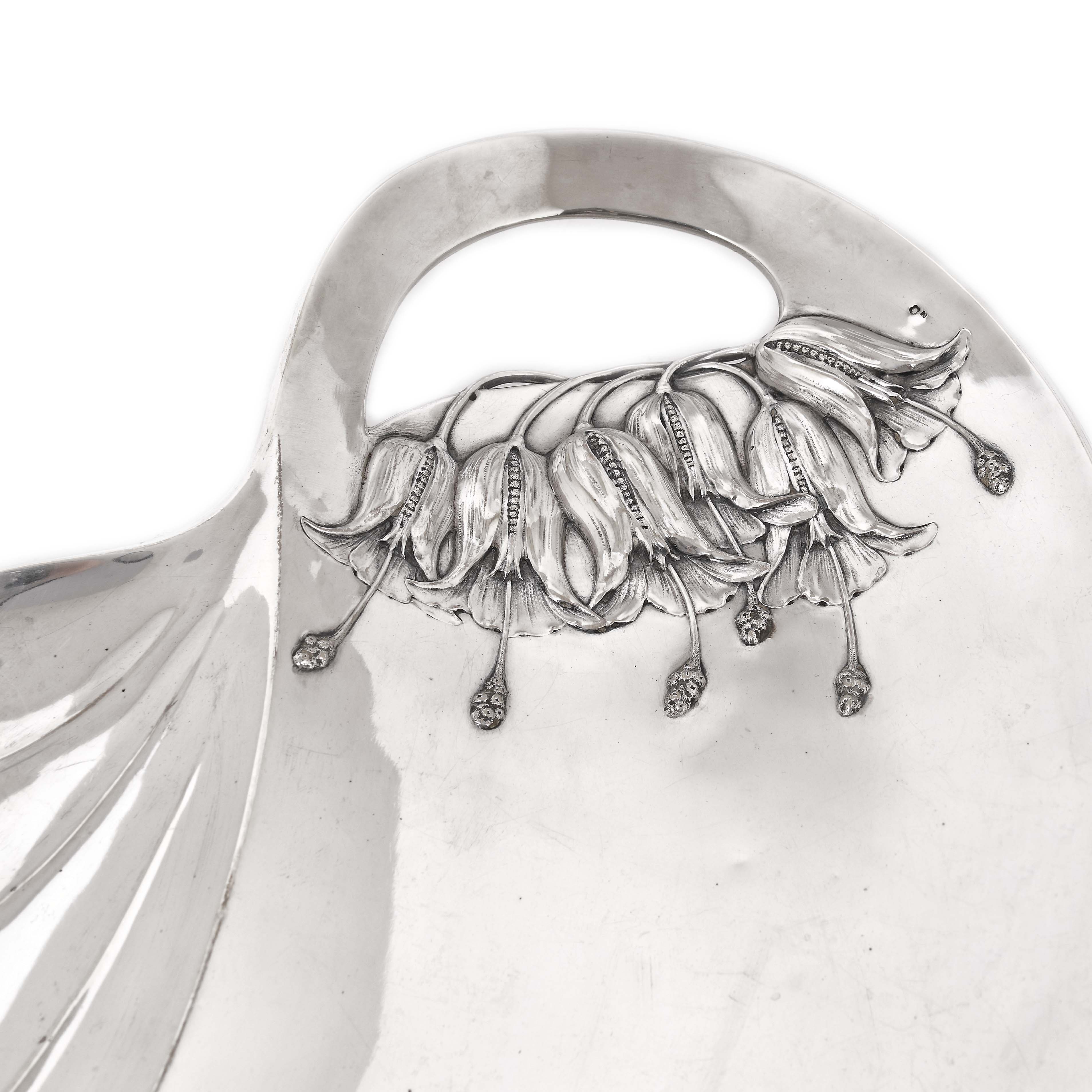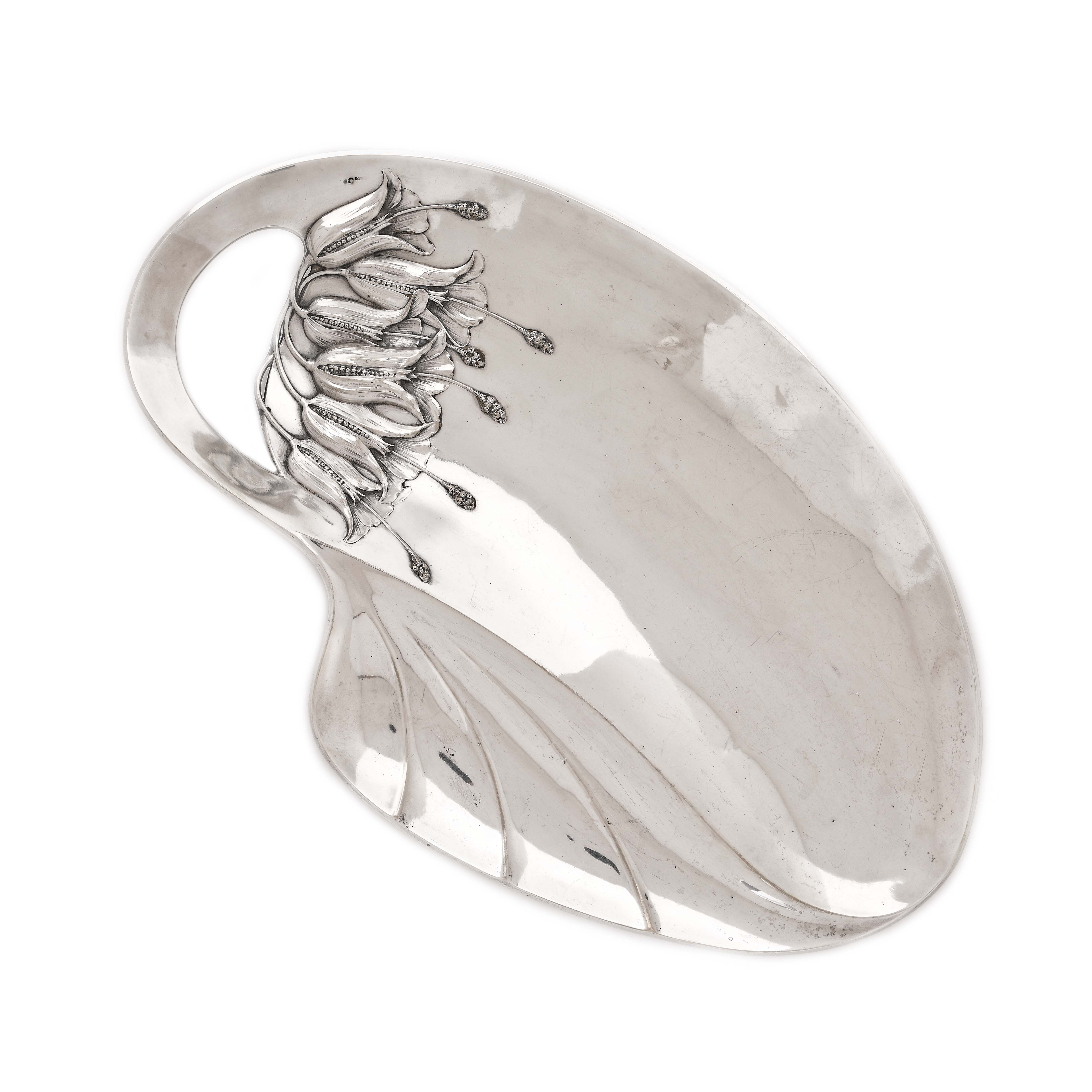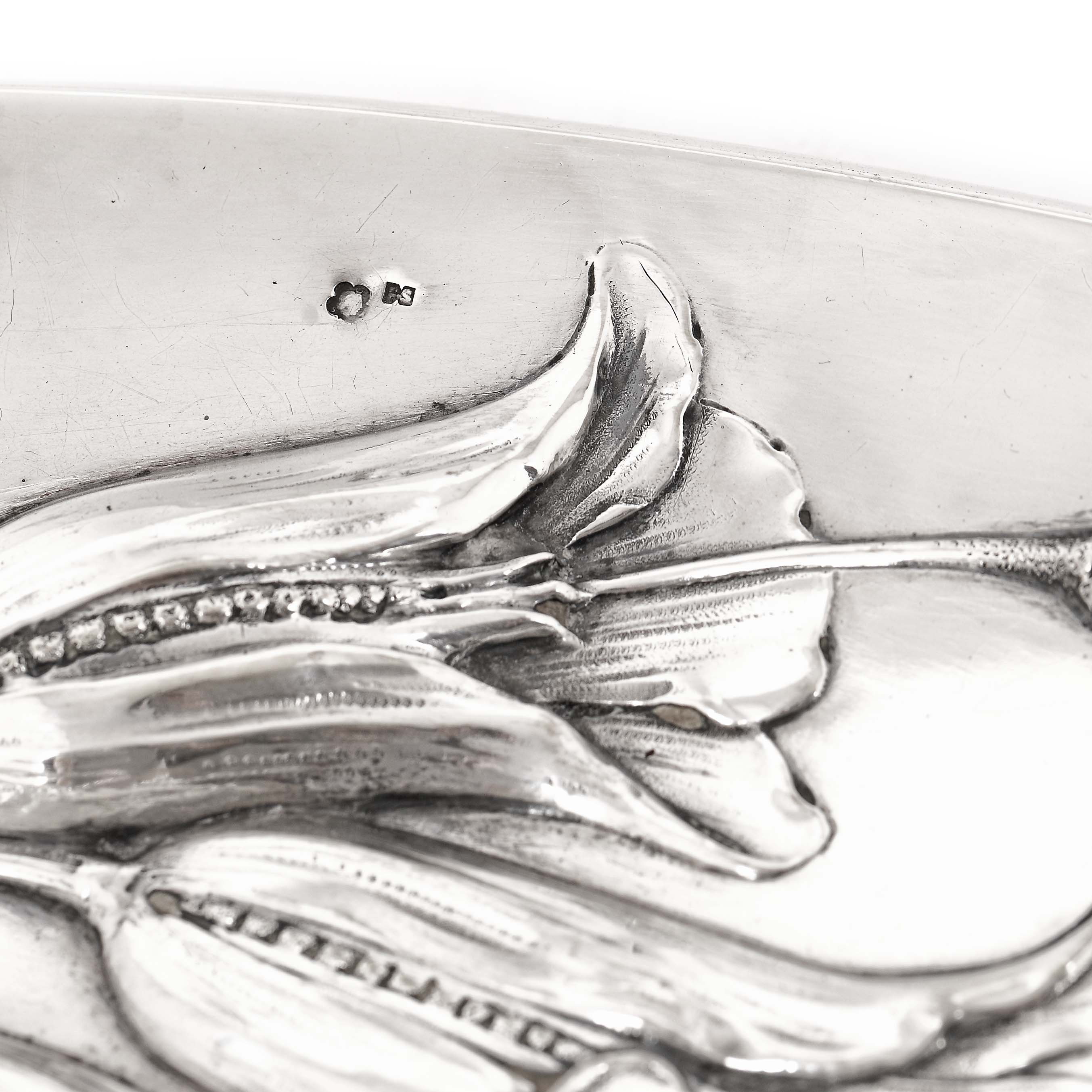 38. Tavă Art Nouveau din argint, cu tulipe reliefate, meșter Franz Schediwy, cca. 1901-1922
