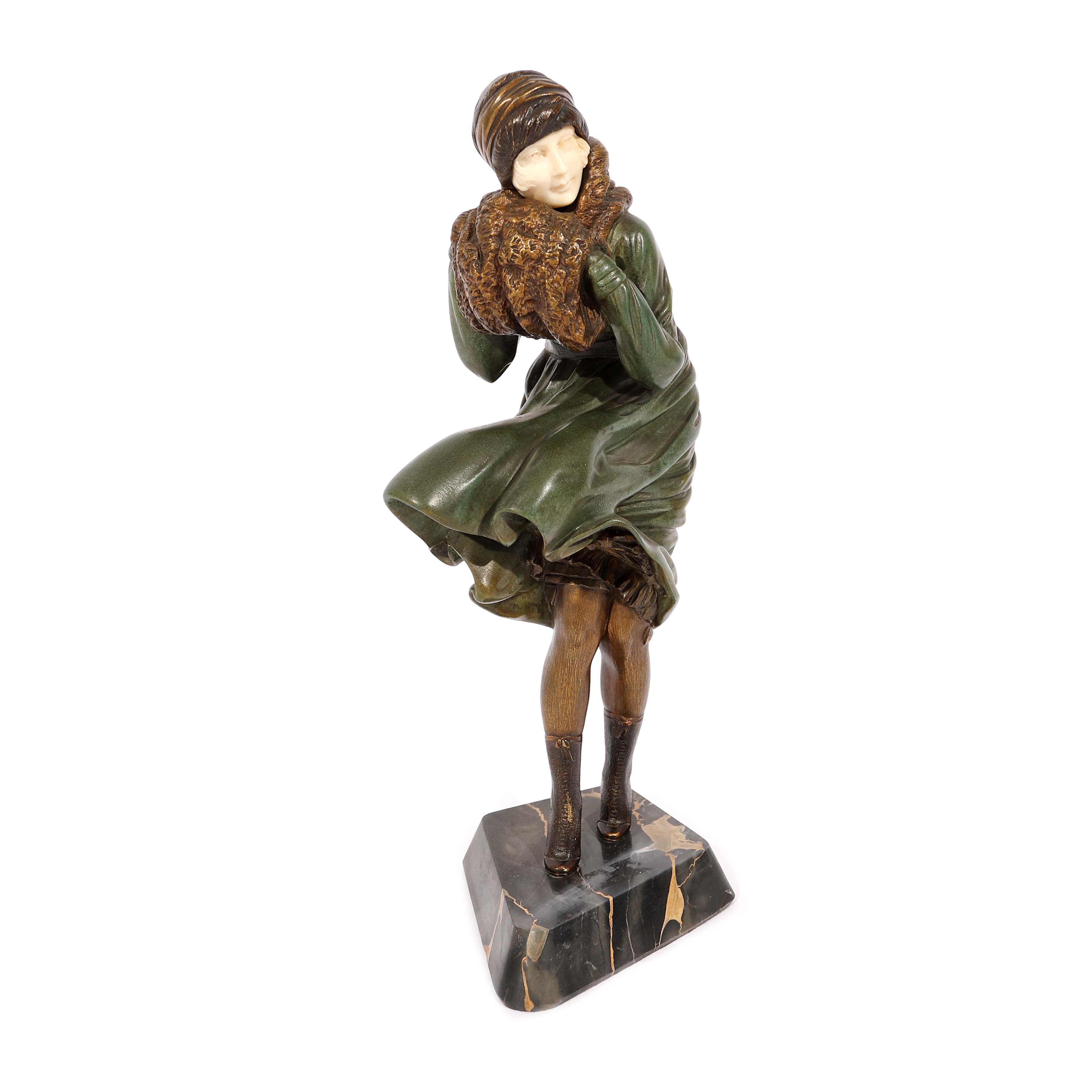 bronz patinat, policrom; fildeș sculptat