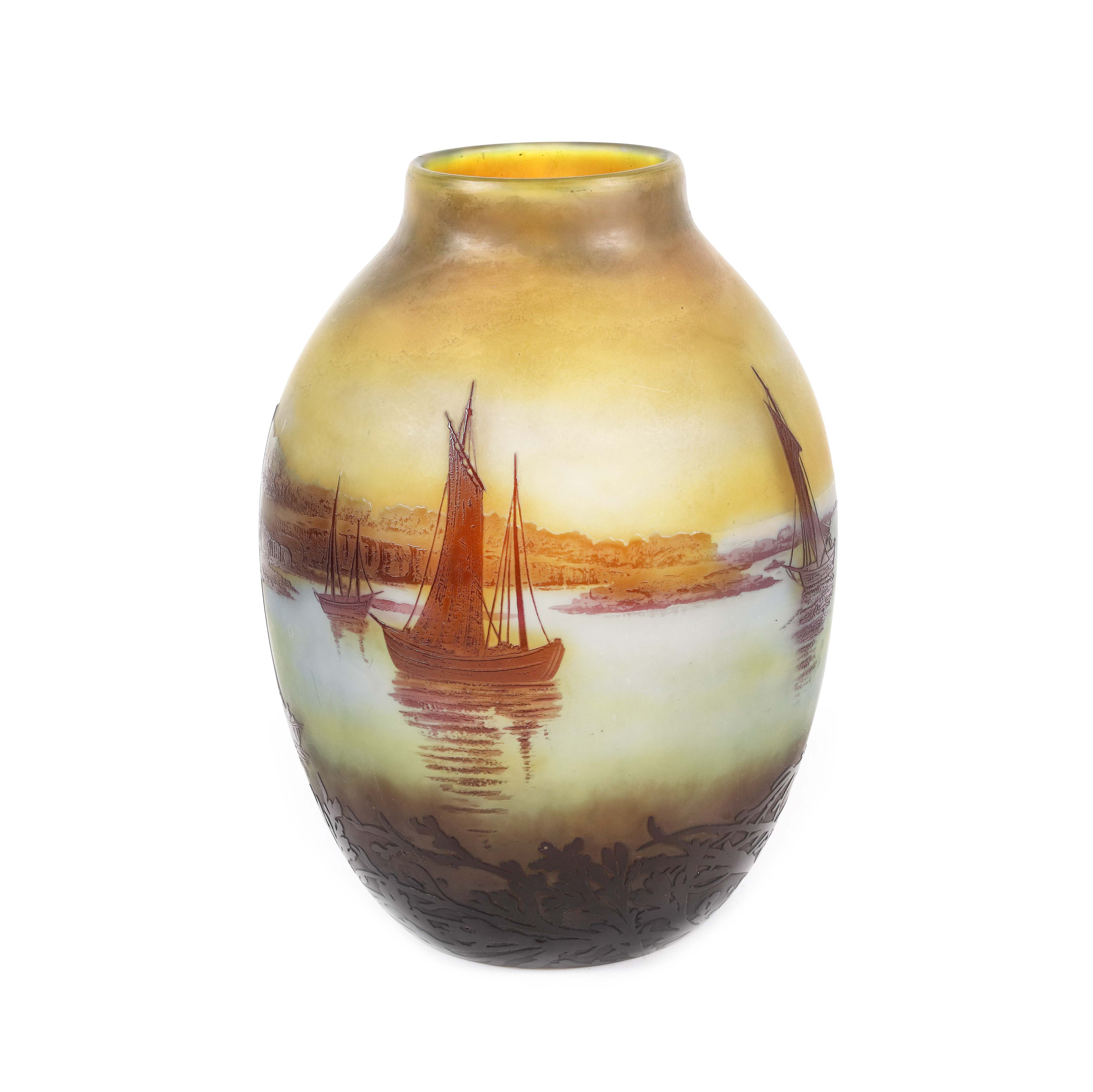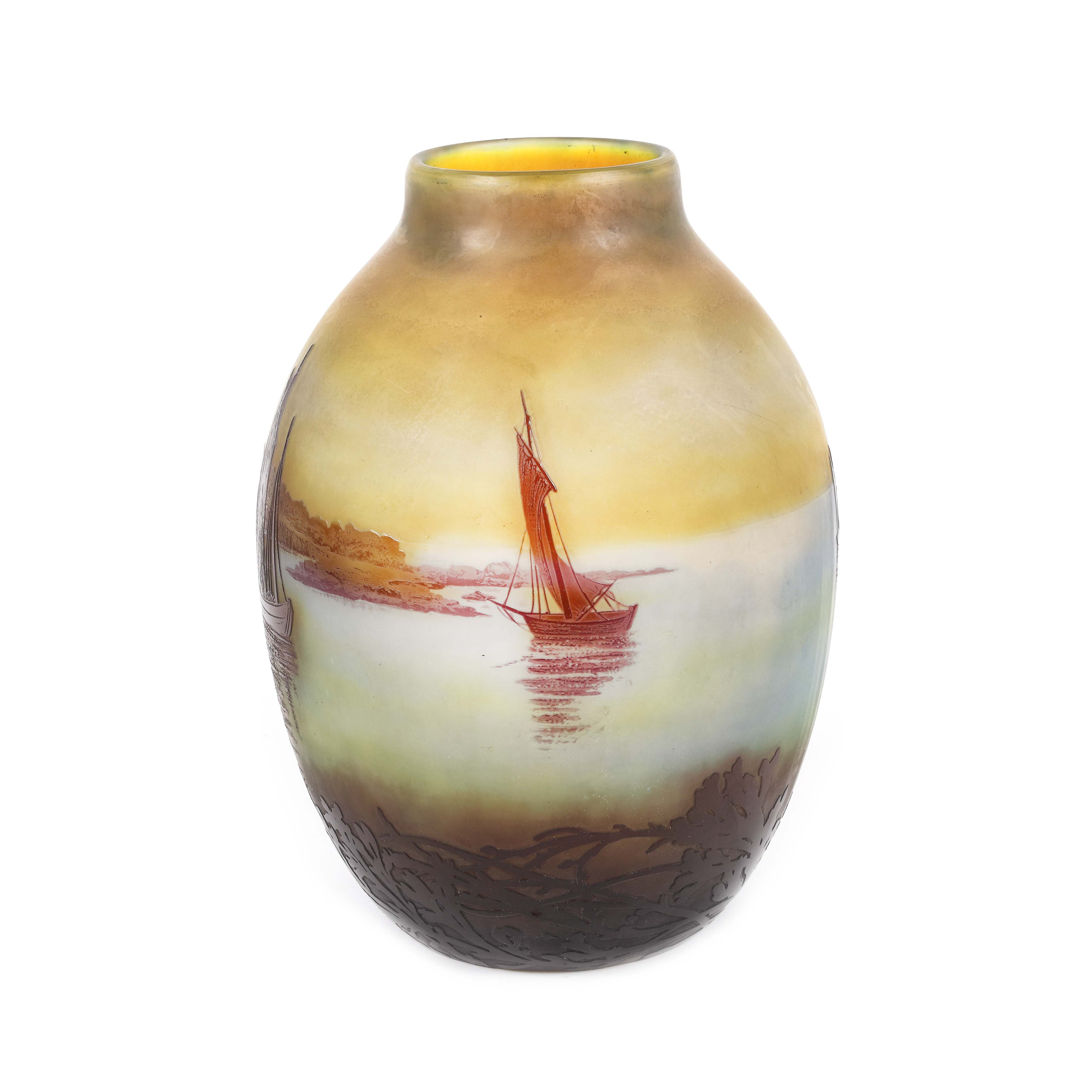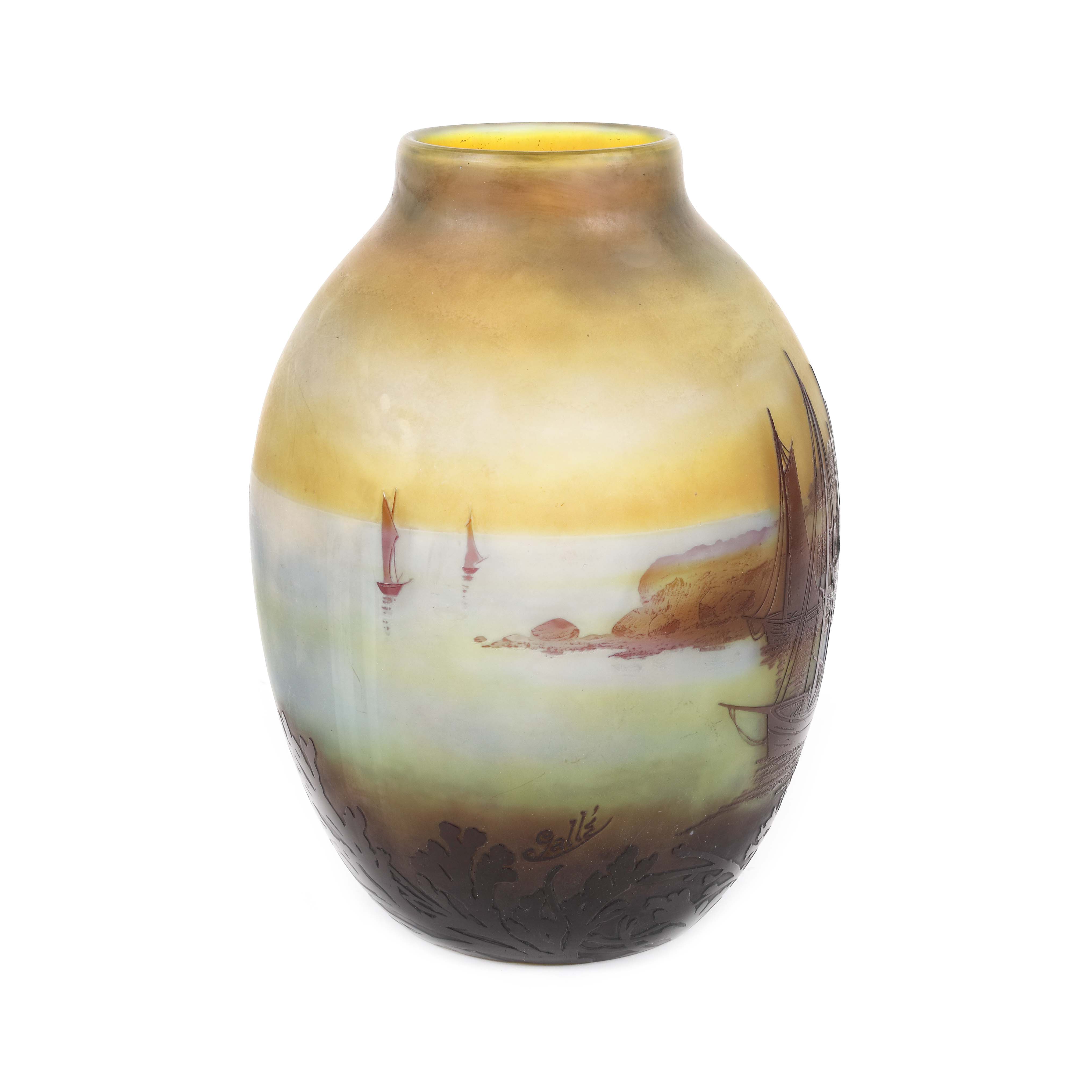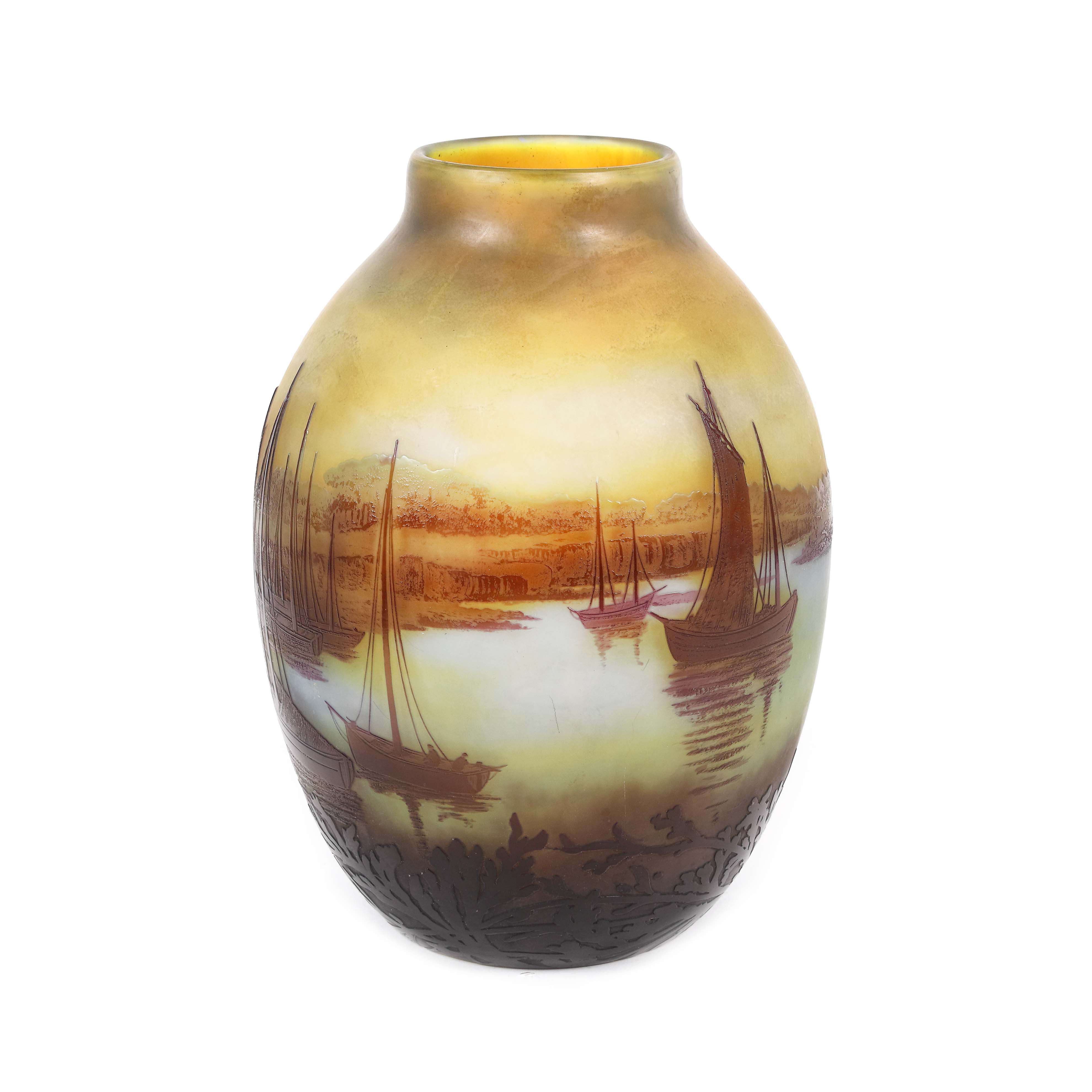25. ”Voiliers, soleil couchant” - vas Gallé, decorat cu peisaj marin, cca. 1925-1936