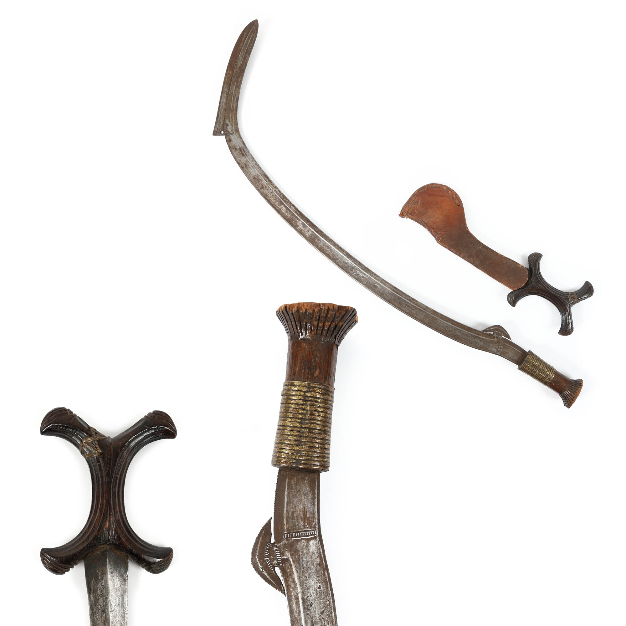 47. Lot format din sabie ”seceră” a triburilor Bandia din Congo și pumnal al triburilor Beja din Sudan, sec. XX