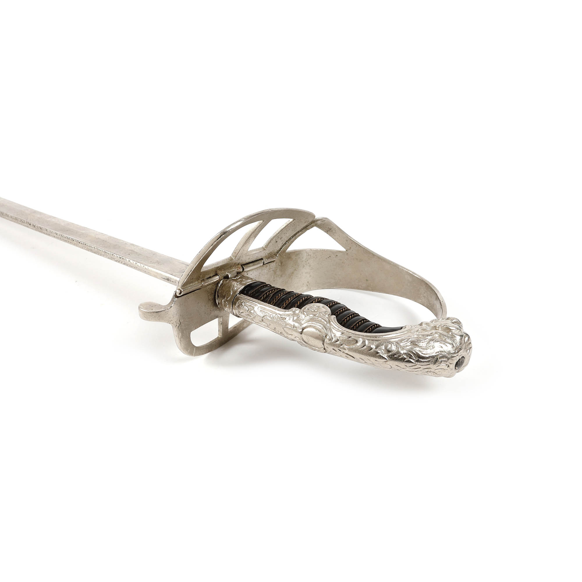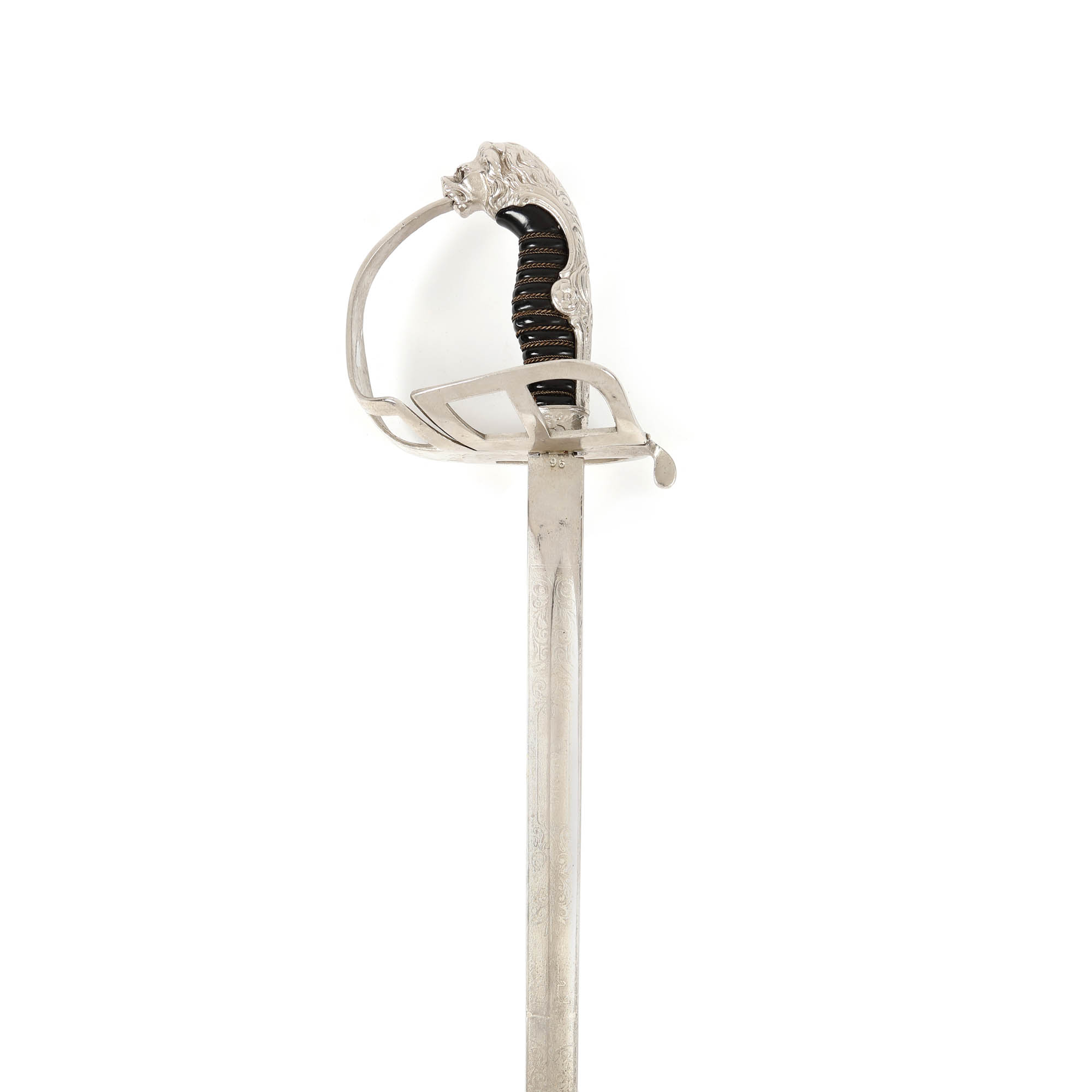 10. Sabie de paradă, de ofițer de cavalerie, cu teacă, purtând cifrul Regelui Ferdinand