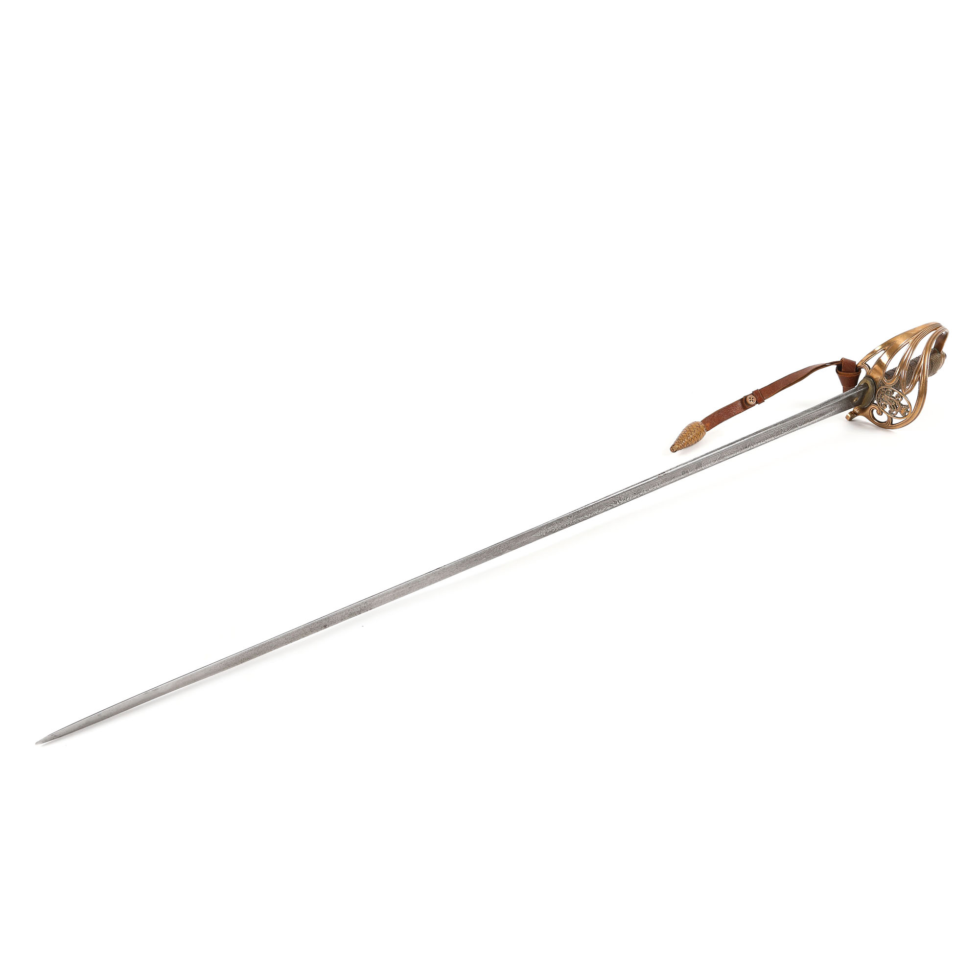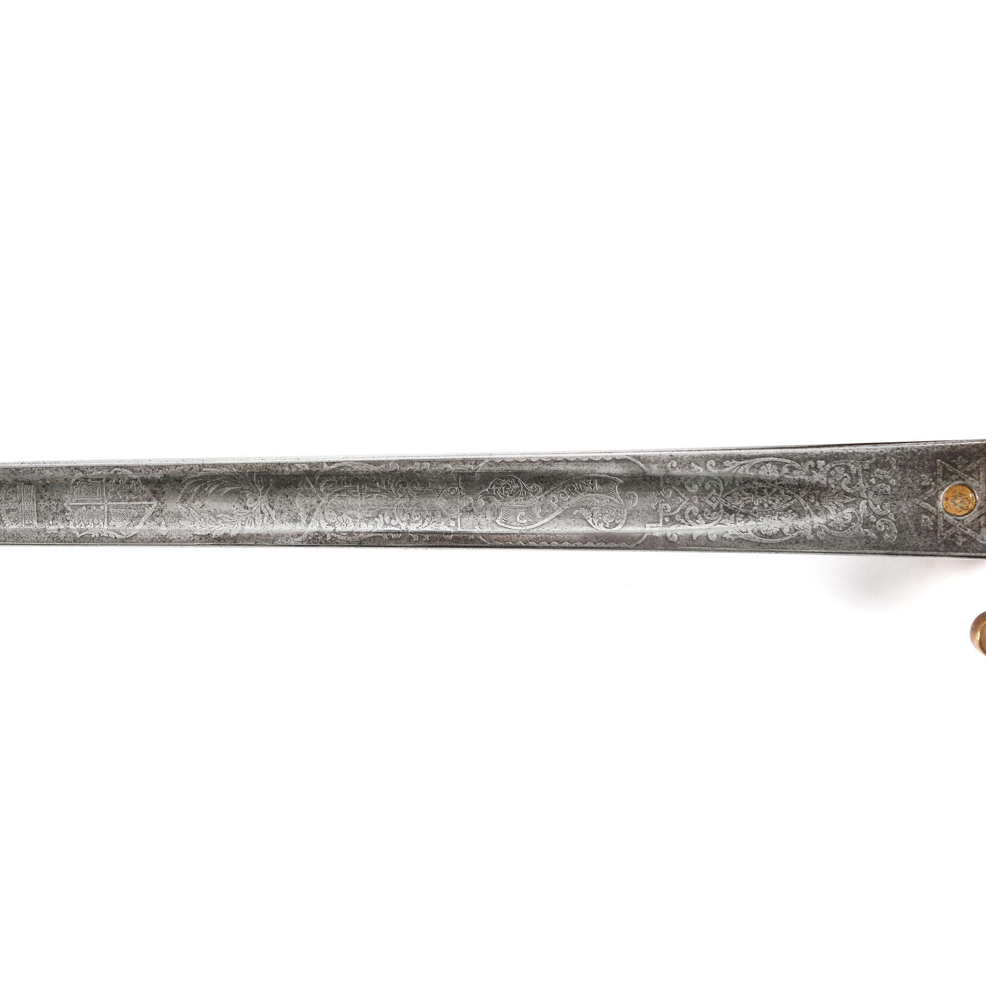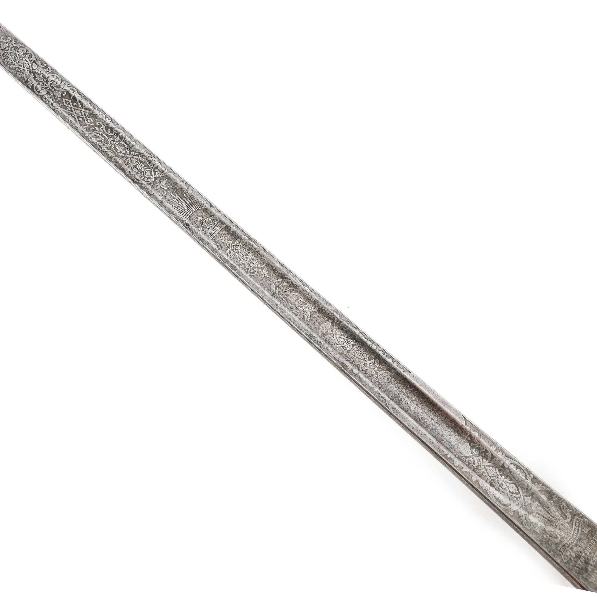 33. Sabie englezească, de ofițer de infanterie, cu teacă, purtând cifrul Reginei Victoria