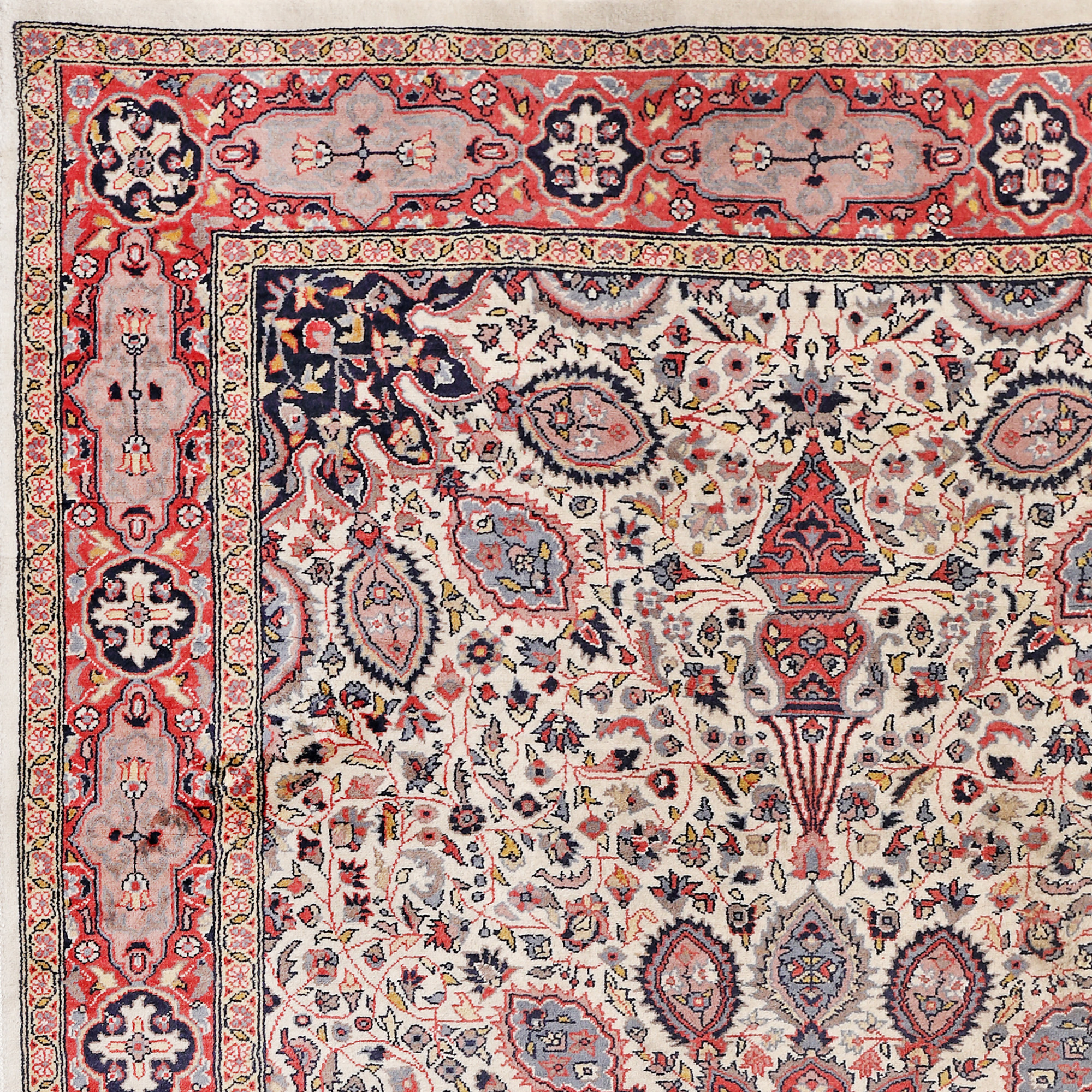 29. Covor Kashan din lână, decorat cu rozetă și motive florale, Iran [a doua jumătate a sec. XX]