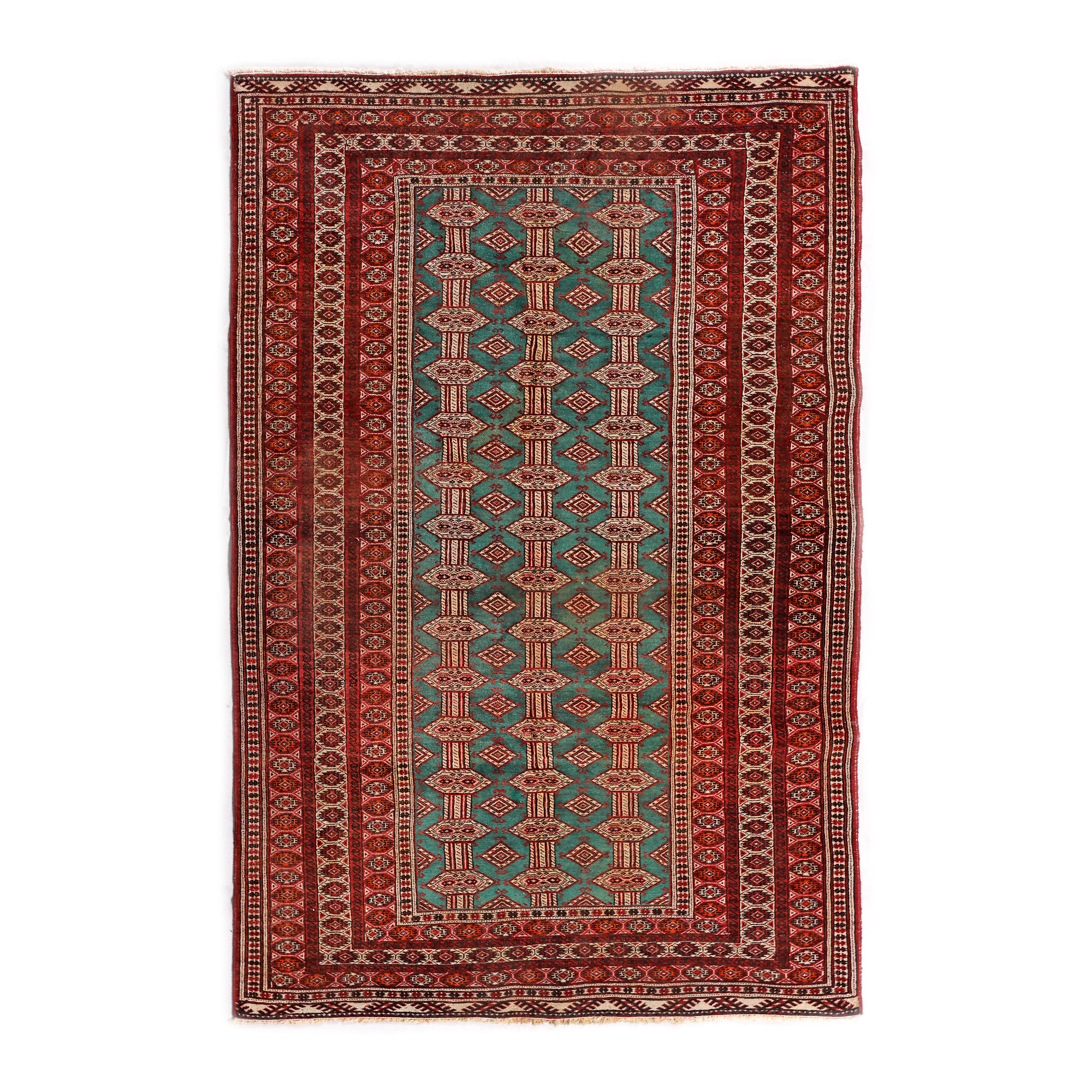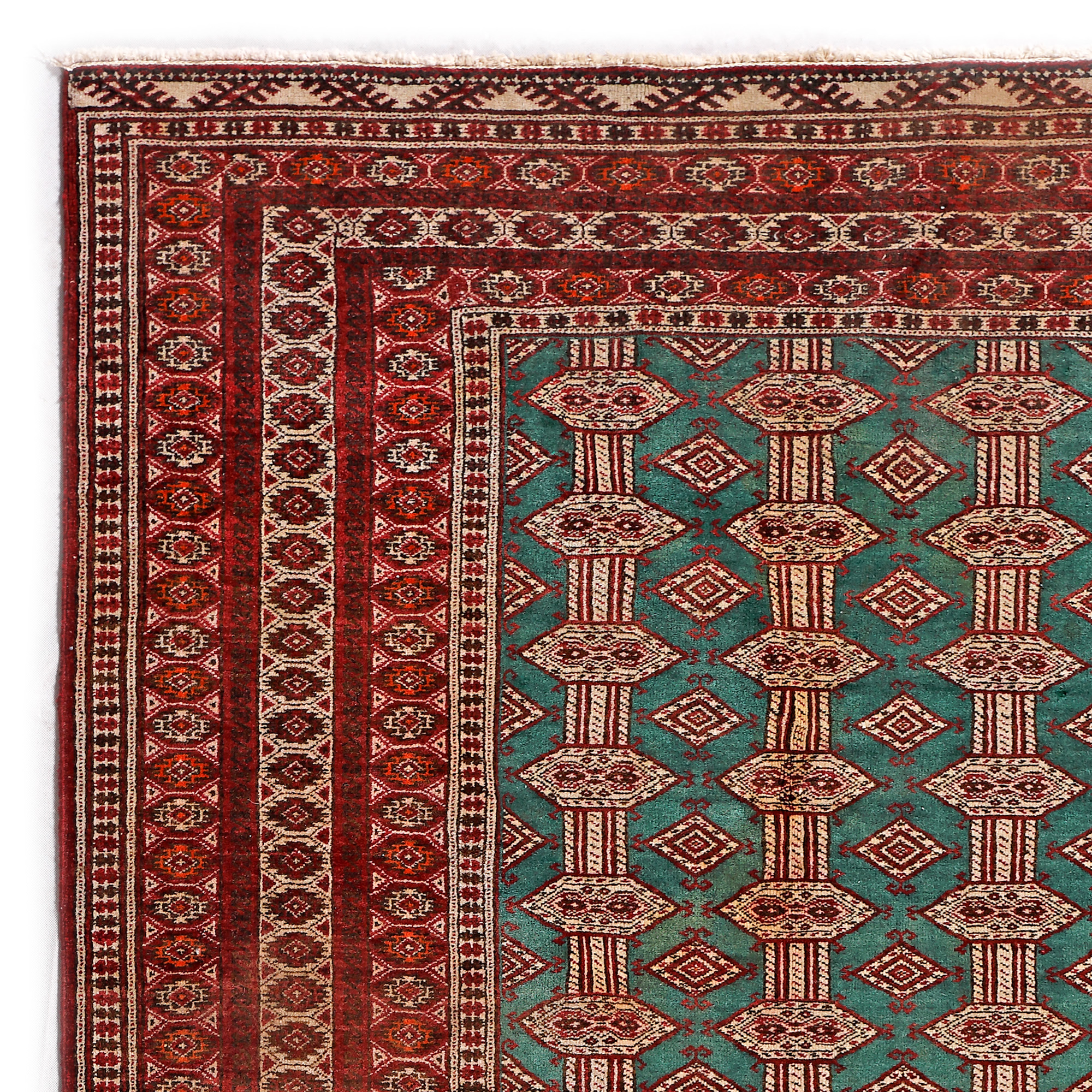47. Covor Tekke-Buhara din lână pe urzeală de lână, fond verde, Turkmenistan, cca. 1910, piesă rară