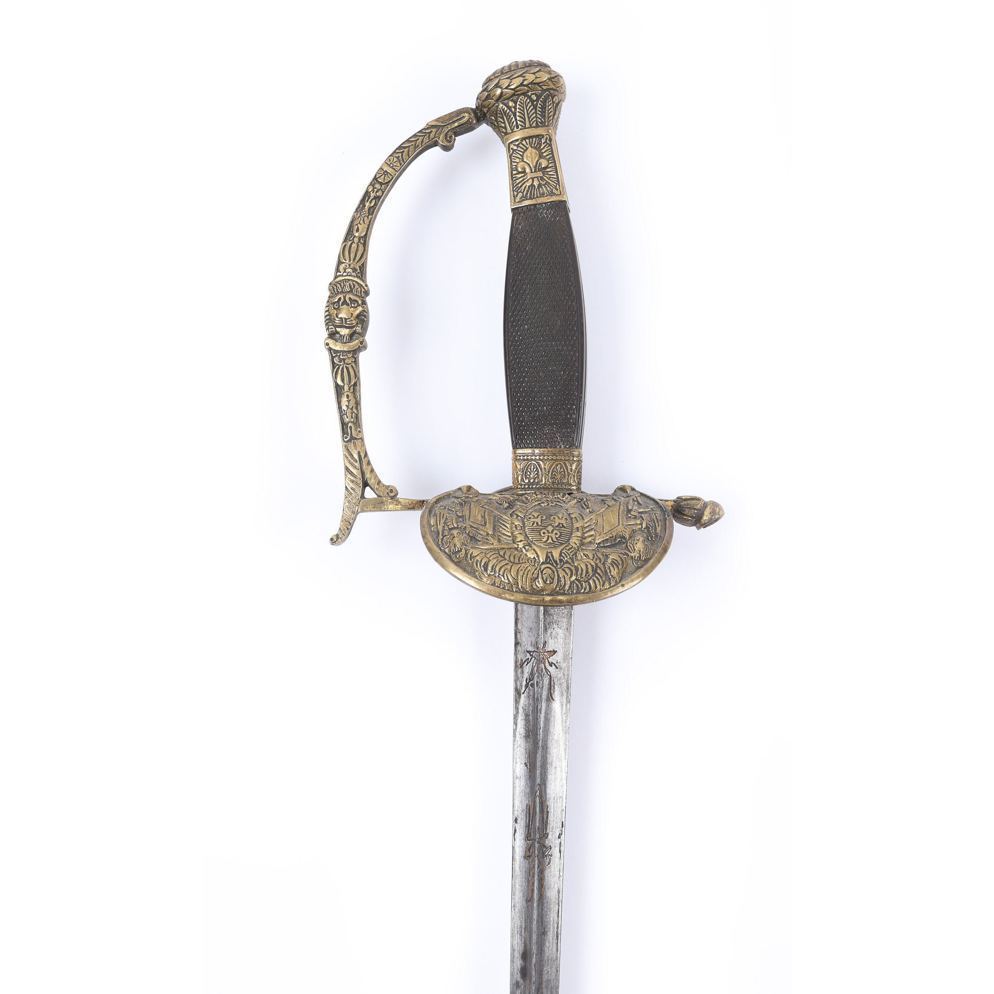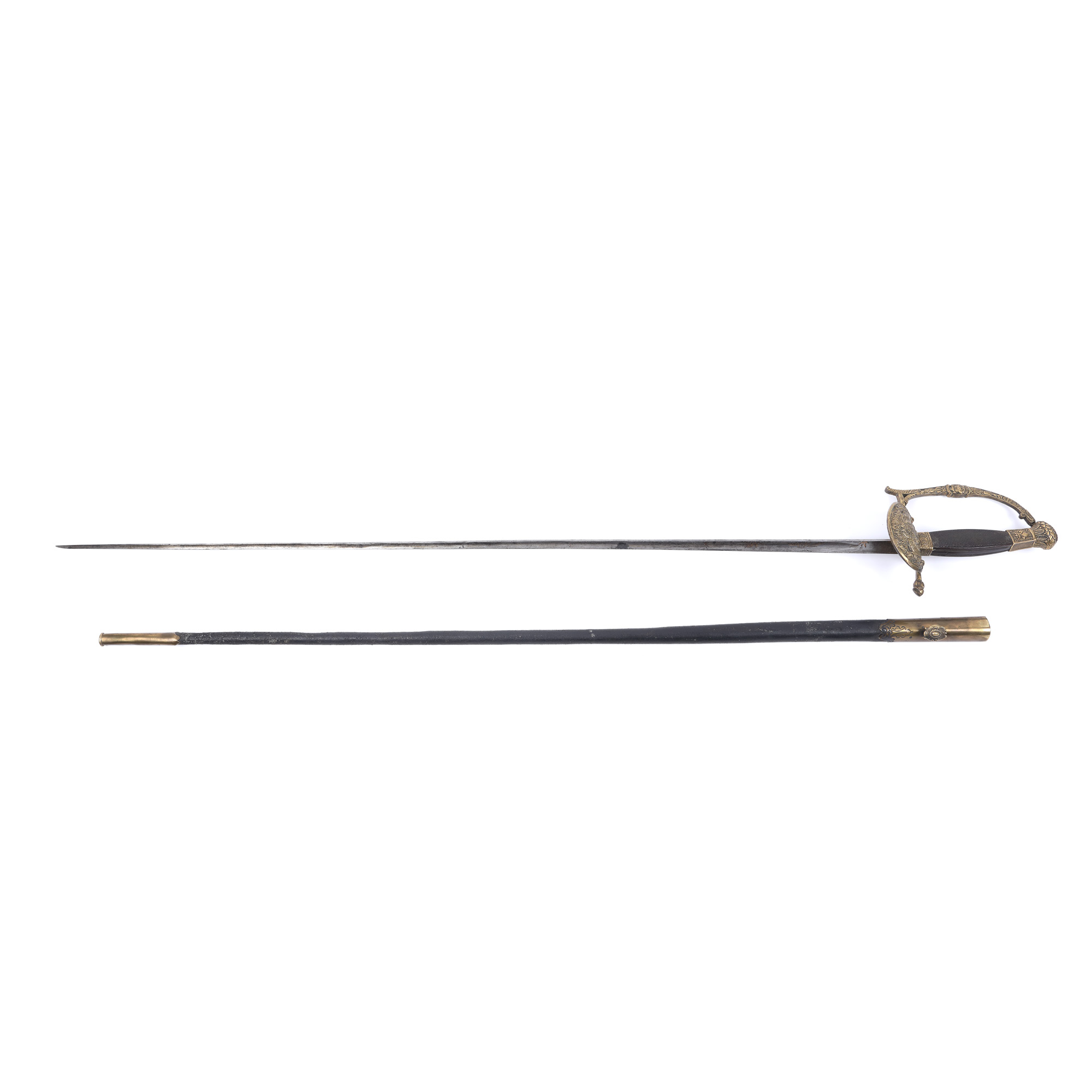 38. Rapieră franceză de ofițer, cu lama triunghiulară și teacă, perioada Louis Philippe, prima jumătate a sec. XIX