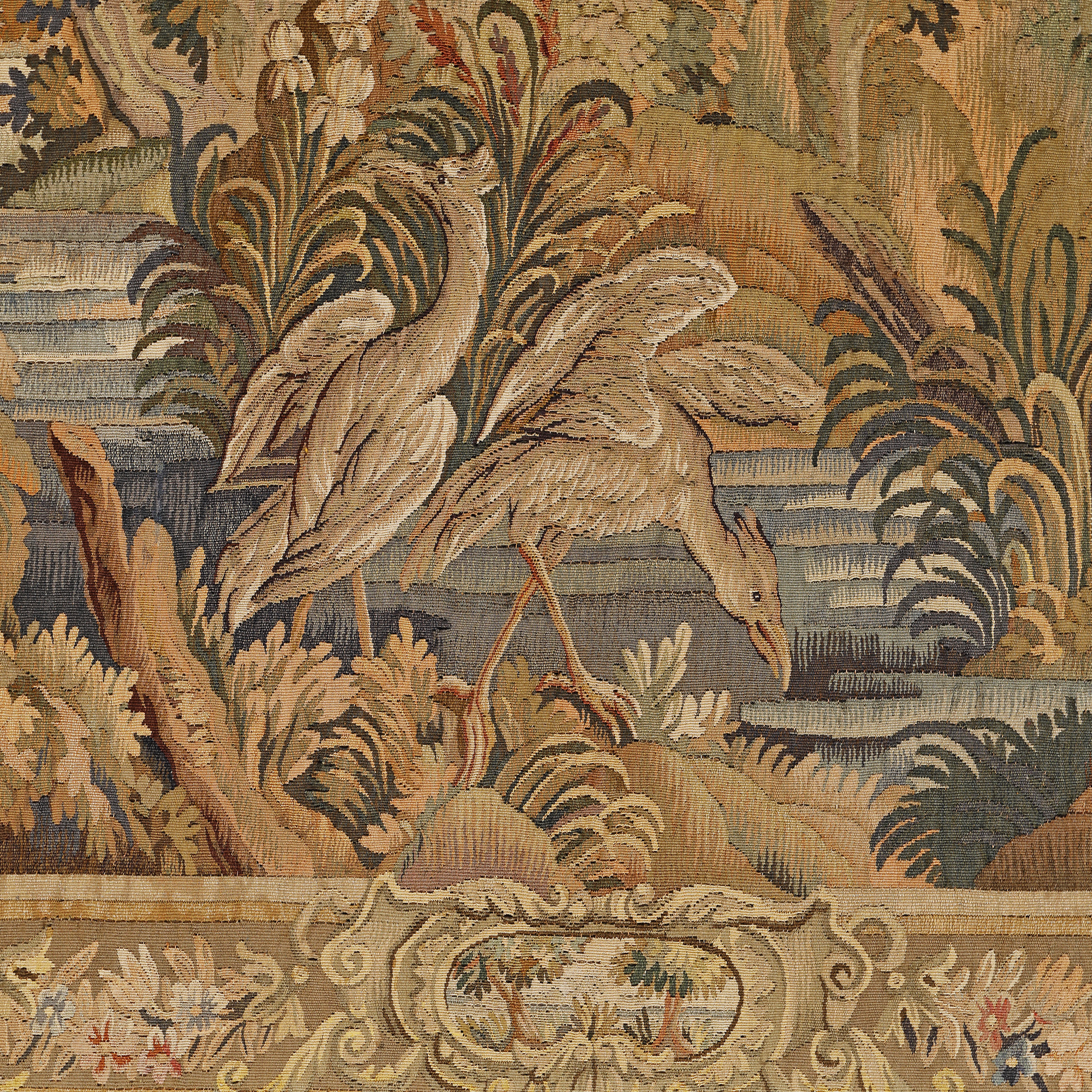 9. Tapiserie din lână, ilustrând un cuplu de păsări în paradis, o reinterpretare a tapiseriei ”Brussels Verdure”, Franța, prima jumătate a sec. XX