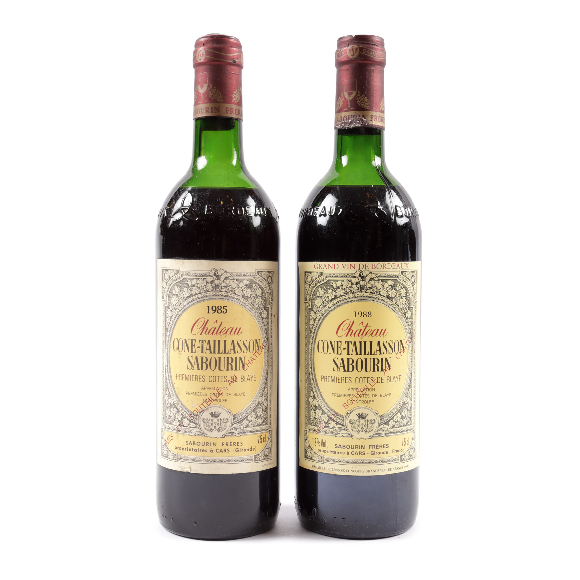 56. Château Cône Taillasson Sabourin, Premières Côtes de Blaye, 1985/1988, 2st x 0,75l