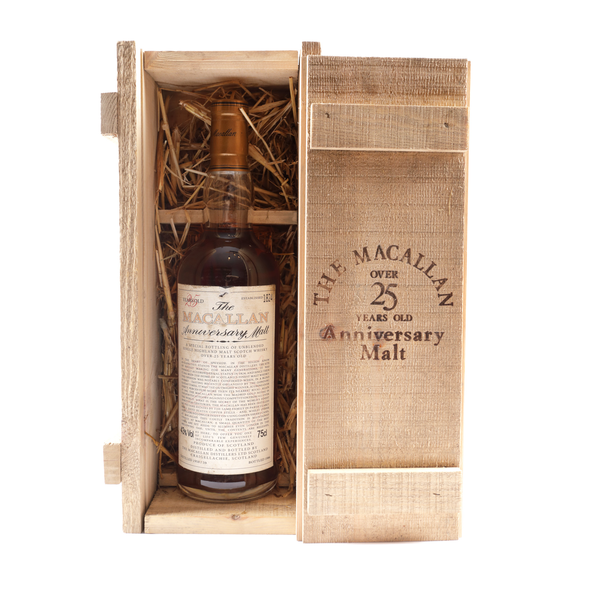 30. Macallan Anniversary Malt, 25 ani vechime, distilat în 1958-1959, îmbuteliat în 1986, 1st x 0,75l