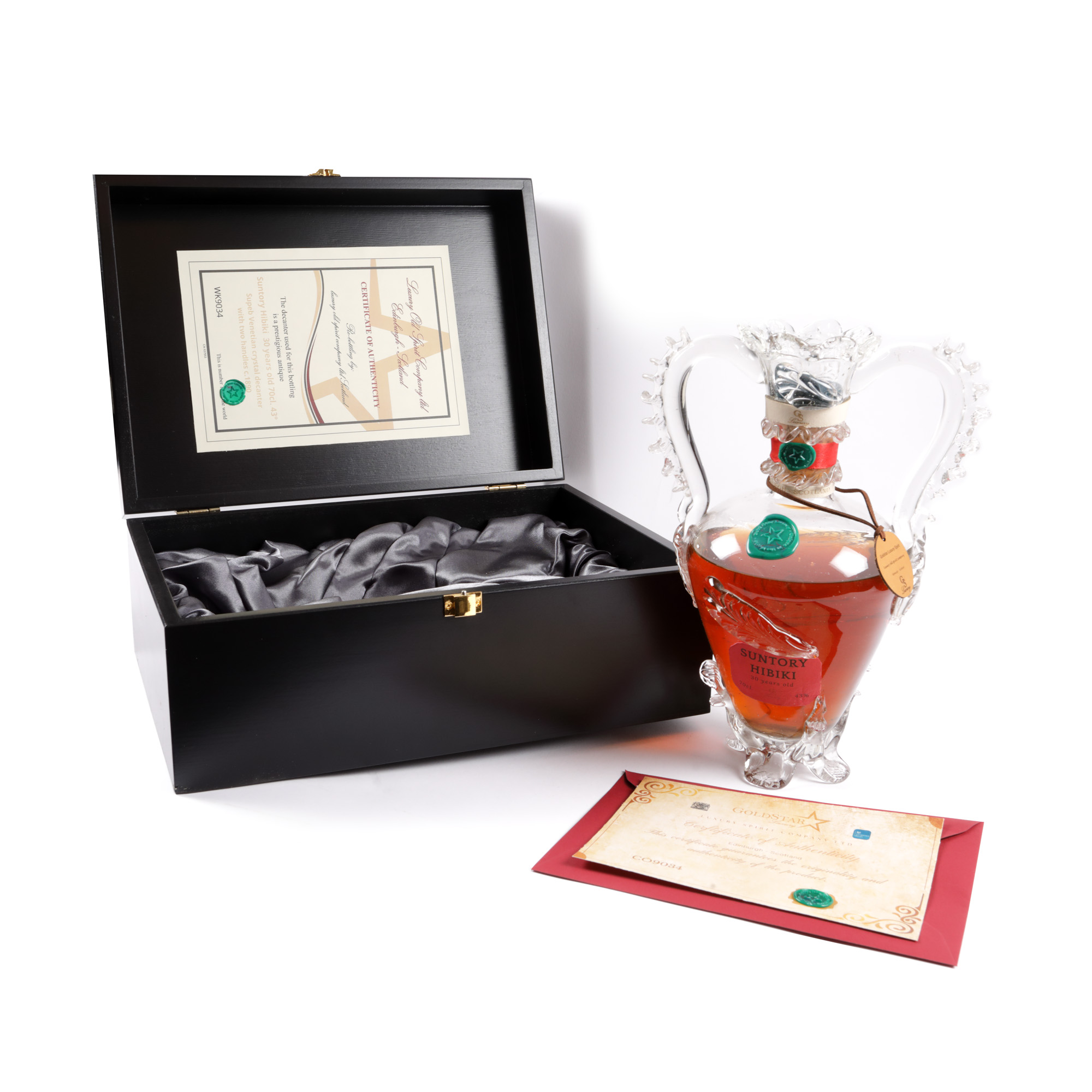 21. Suntory Whisky Hibiki, 30 de ani vechime, reîmbuteliat în superb decantor venețian din cristal, cca. 1890, 1st x 0,70l, însoțit de certificat de autenticitate