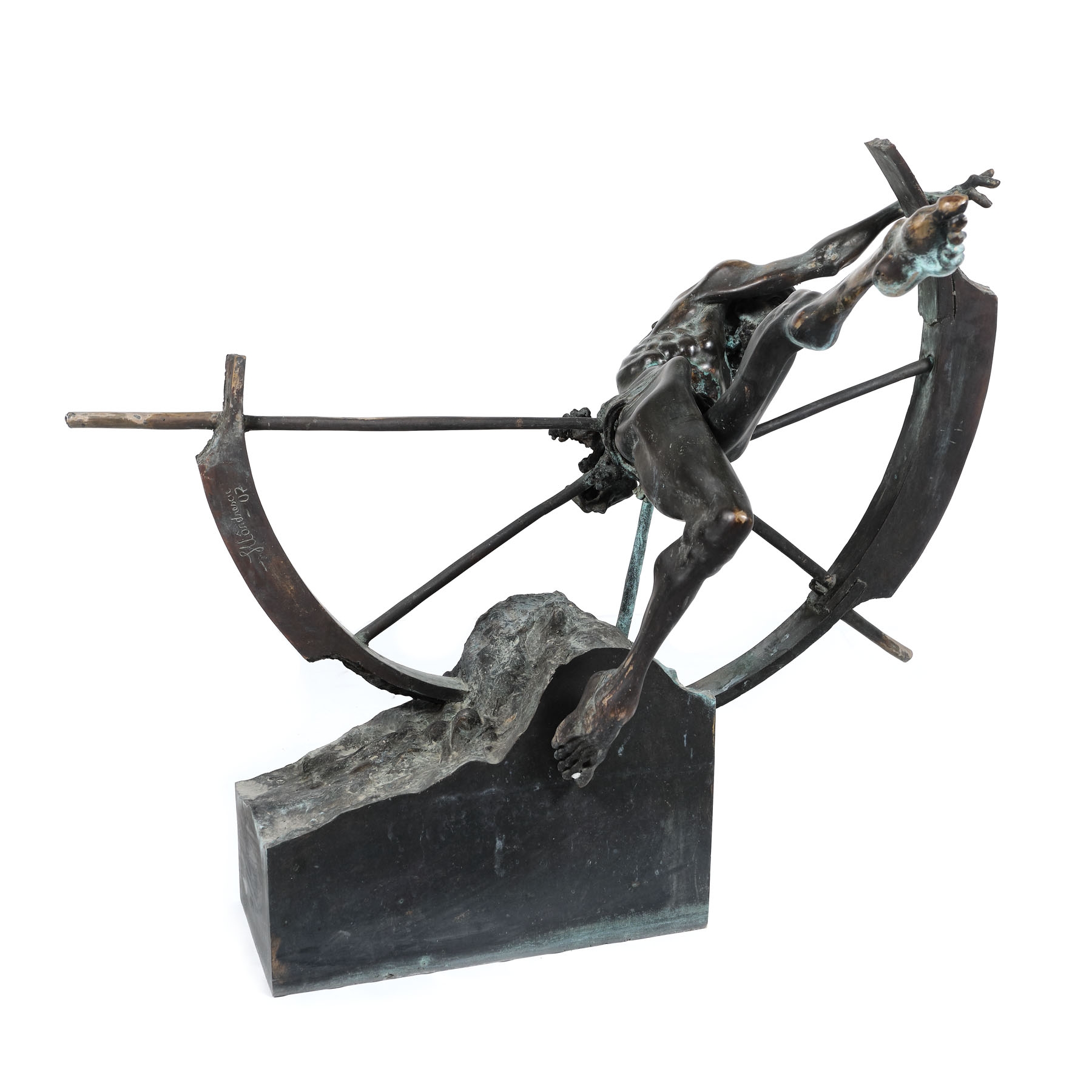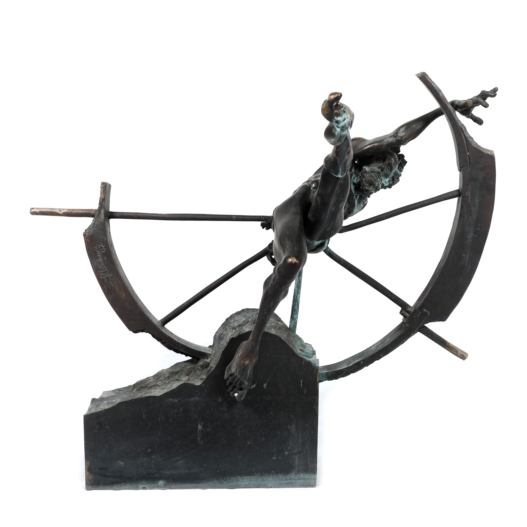 Ion Mândrescu este un reprezentat al sculpturii figurative din România. Lucrările sale au totodată influenţe bine împământenite în realismul clasic, atât prin compoziţie, cât şi prin stil. Din 1976 începe să studieze la Institutul de Arte Plastice Nicolae Grigorescu. O primă evoluţie stilistică a lui Mândrescu se poate observa în 1977, după cutremurul devastator care a avut loc în România. Acesta ajunge să îşi reconsidere imaginea despre figurativ, care începând de atunci va căpăta vigurozitate şi înţeles. Din 1985, începe seria “Omul, Timpul, Spaţiul”, a cărei lucrări sunt definitorii pentru perioada de maturitate artistică a sculptorului, în care se întoarce din nou la sculptura figurativă. Sculpturile de bronz ale acestei serii sunt caracterizate foarte bine prin felul în care artistul reuşeşte să exprime trăirile şi emoţiile bulversante ale personajului. Dramatismul acestuia este redat atât prin postura sa, cât şi prin expresia facială. Mândrescu transpune perfect relaţia conflictuală a omului cu timpul, care totodată este şi o relaţie de interdependenţă, existenţa unuia fară celalalt fiind futilă. Omul este reprezentat ca fiind axul roţii, pe care o are prinsă în jurul mijlocului, damnat să facă parte din ciclicitatea acesteia, aşa cum omenirea este supusă ciclicităţii timpului.