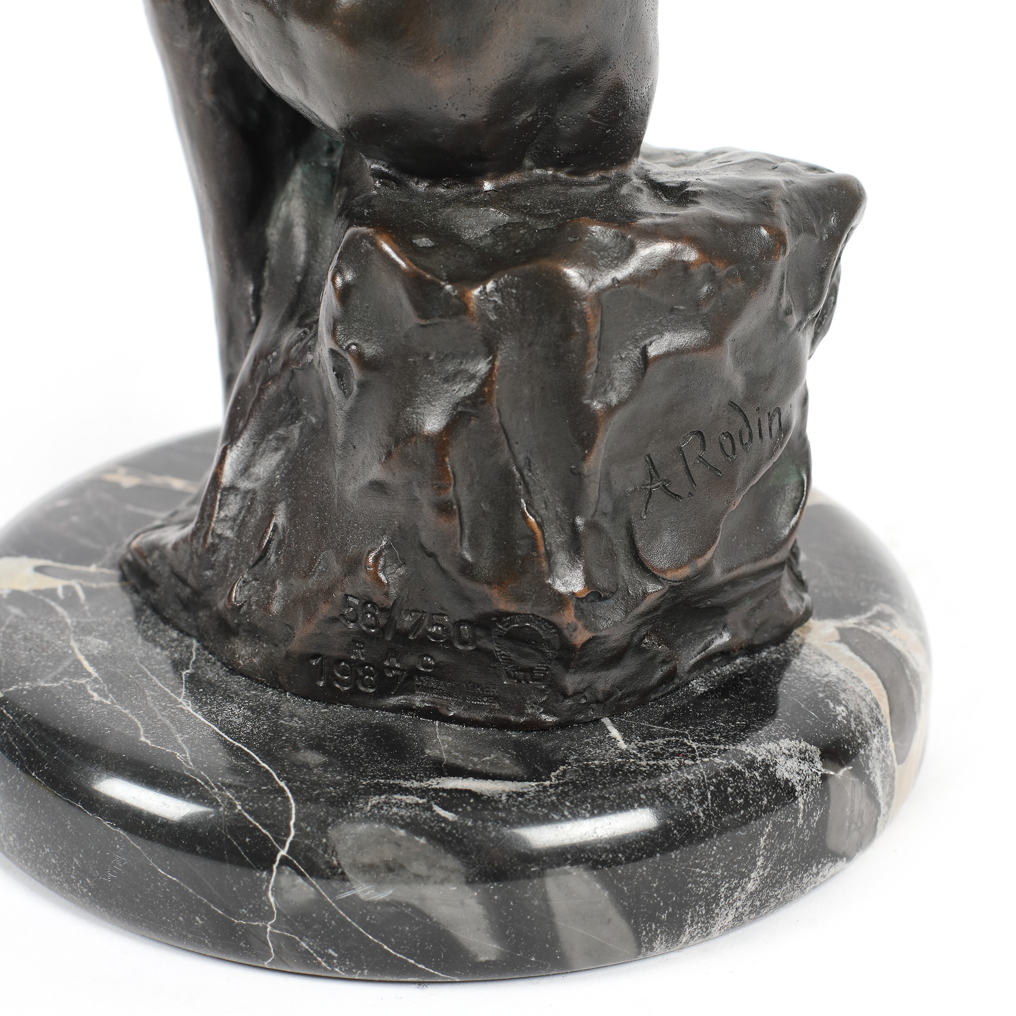 semnat la bază, prin incizare, "A. Rodin"; numerotat, ștampilat, datat și inscripționată turnătoria la bază, prin incizare, "56/750, 1987, RAC, Strassacker Kunstguss Sussen"