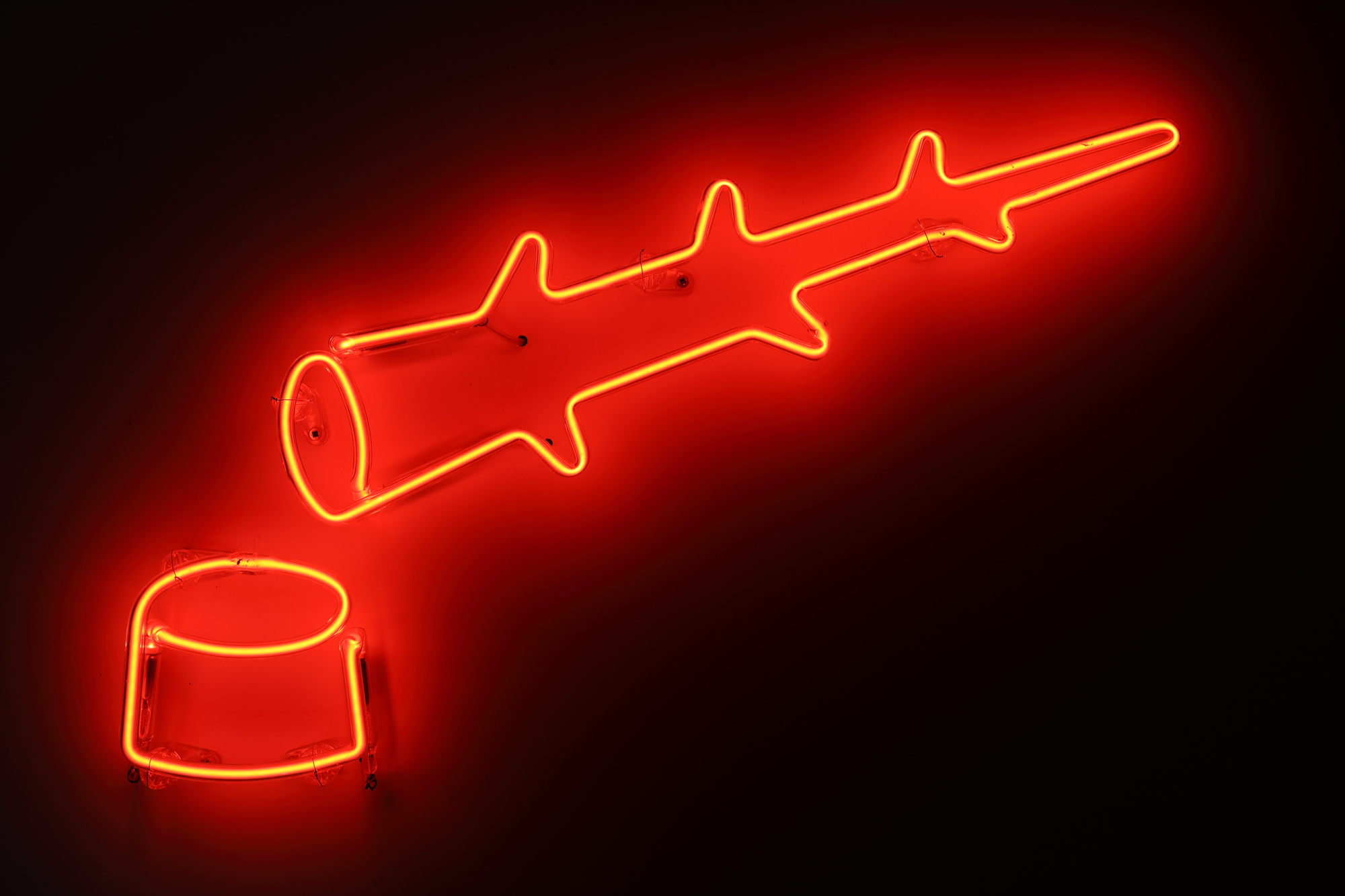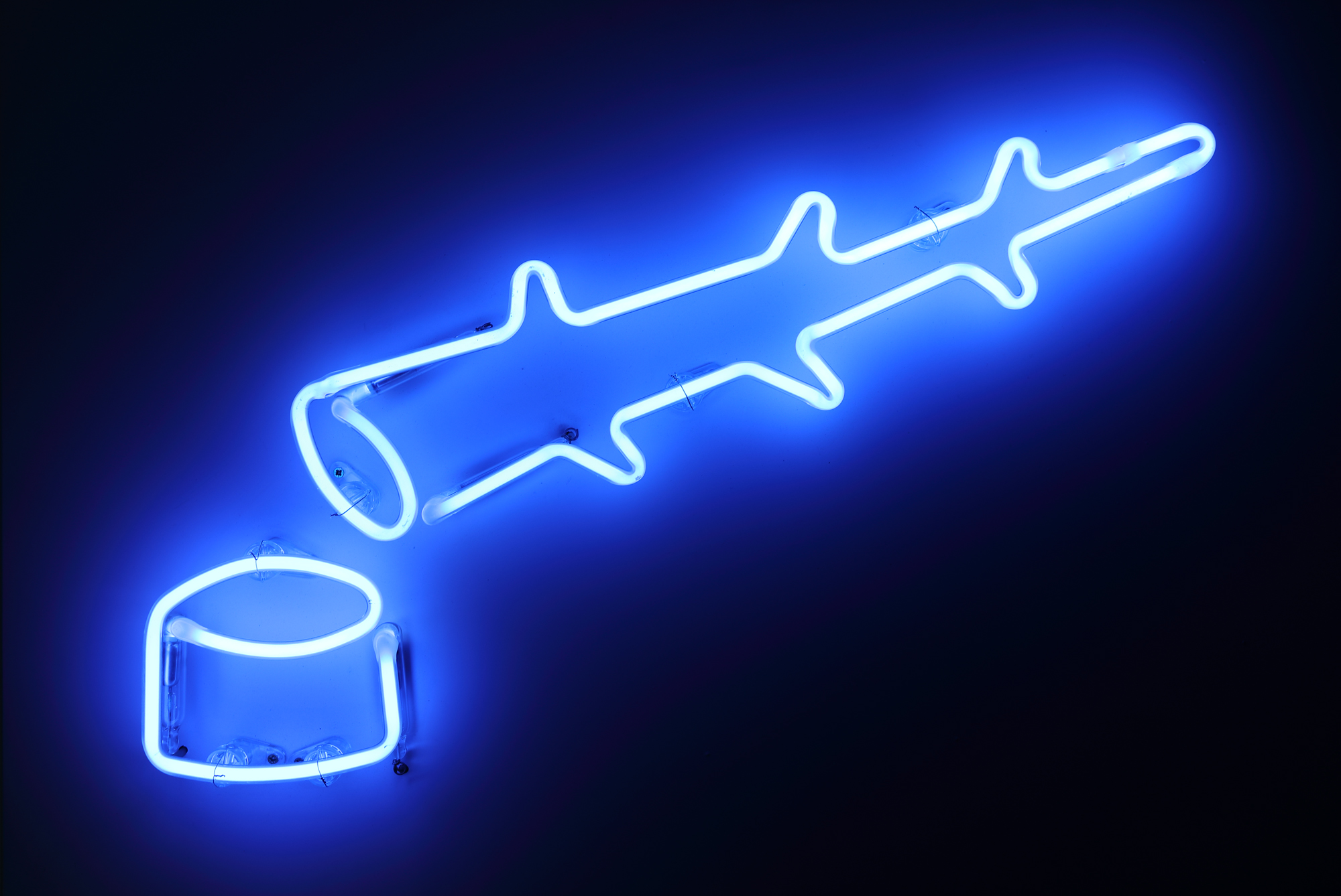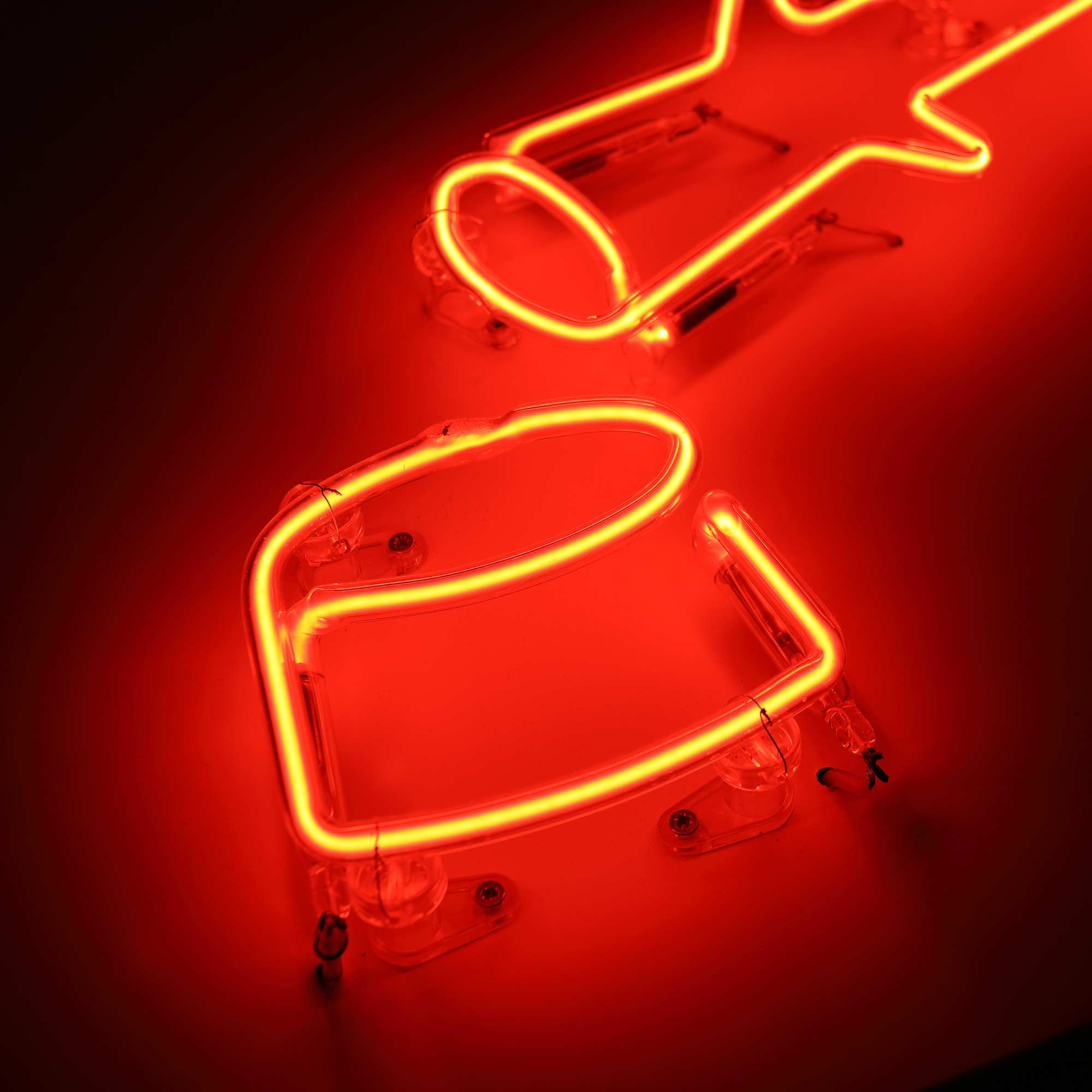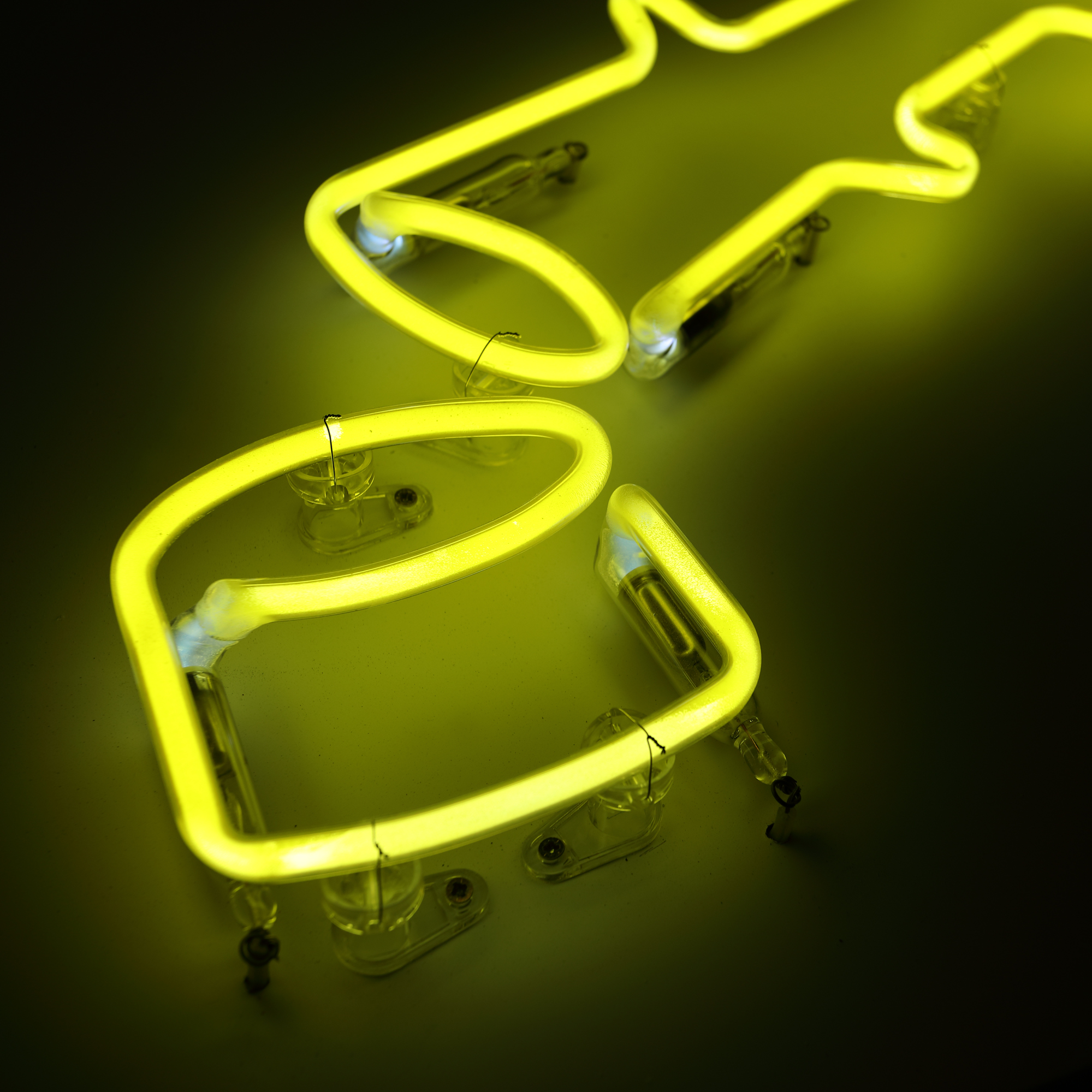 tub modelat, neon pe gaz, trei elemente legate în serie cu transformator, pe suport de placă metalică