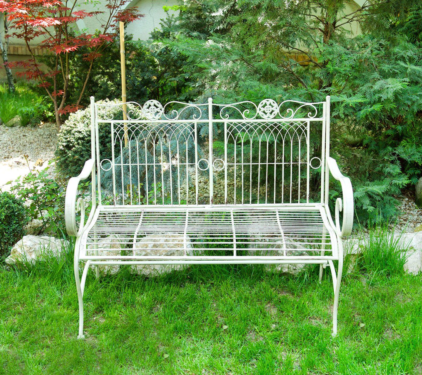 37. Băncuță pentru grădină, cu brațe cambrate