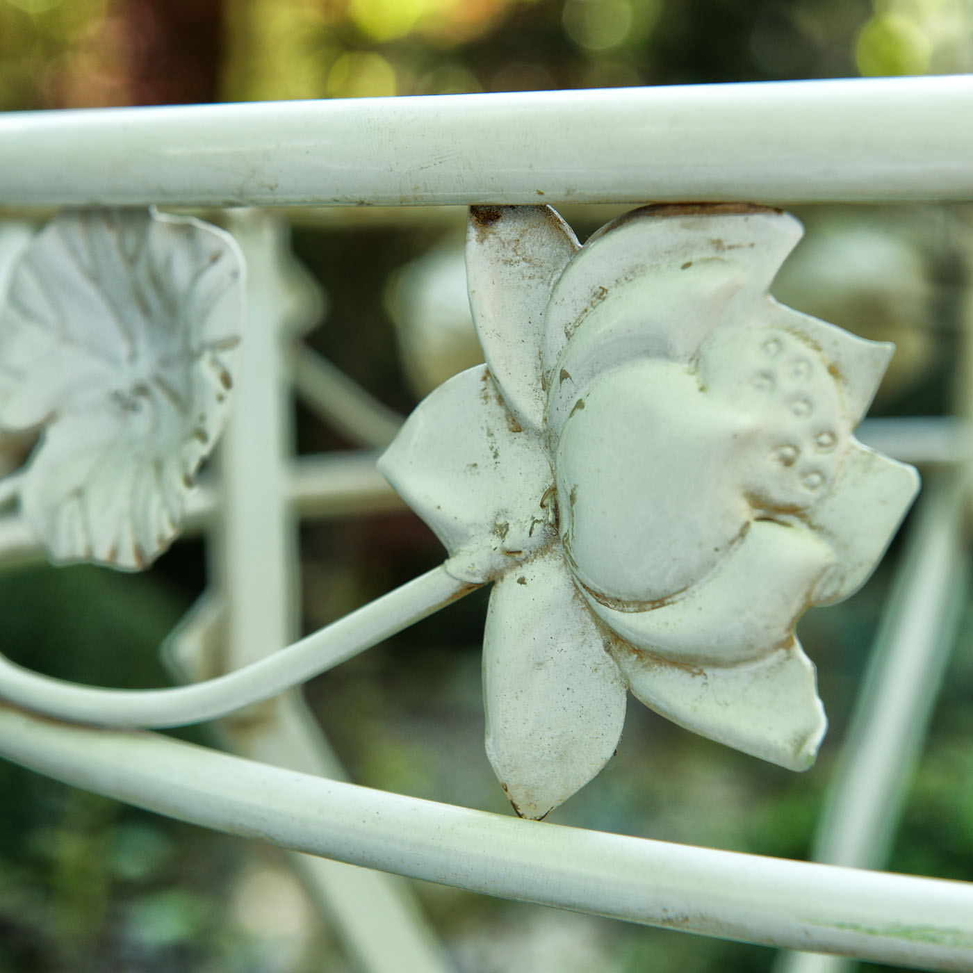 26. Masă pliabilă, cu model floral-vegetal, din fier forjat, pentru grădină