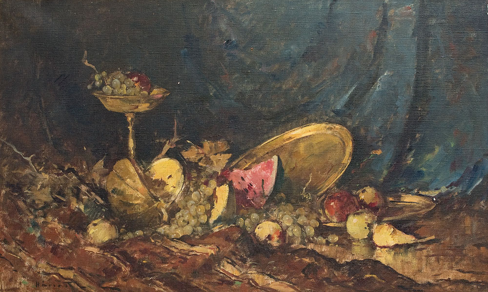 17. Natură statică cu struguri și pepene