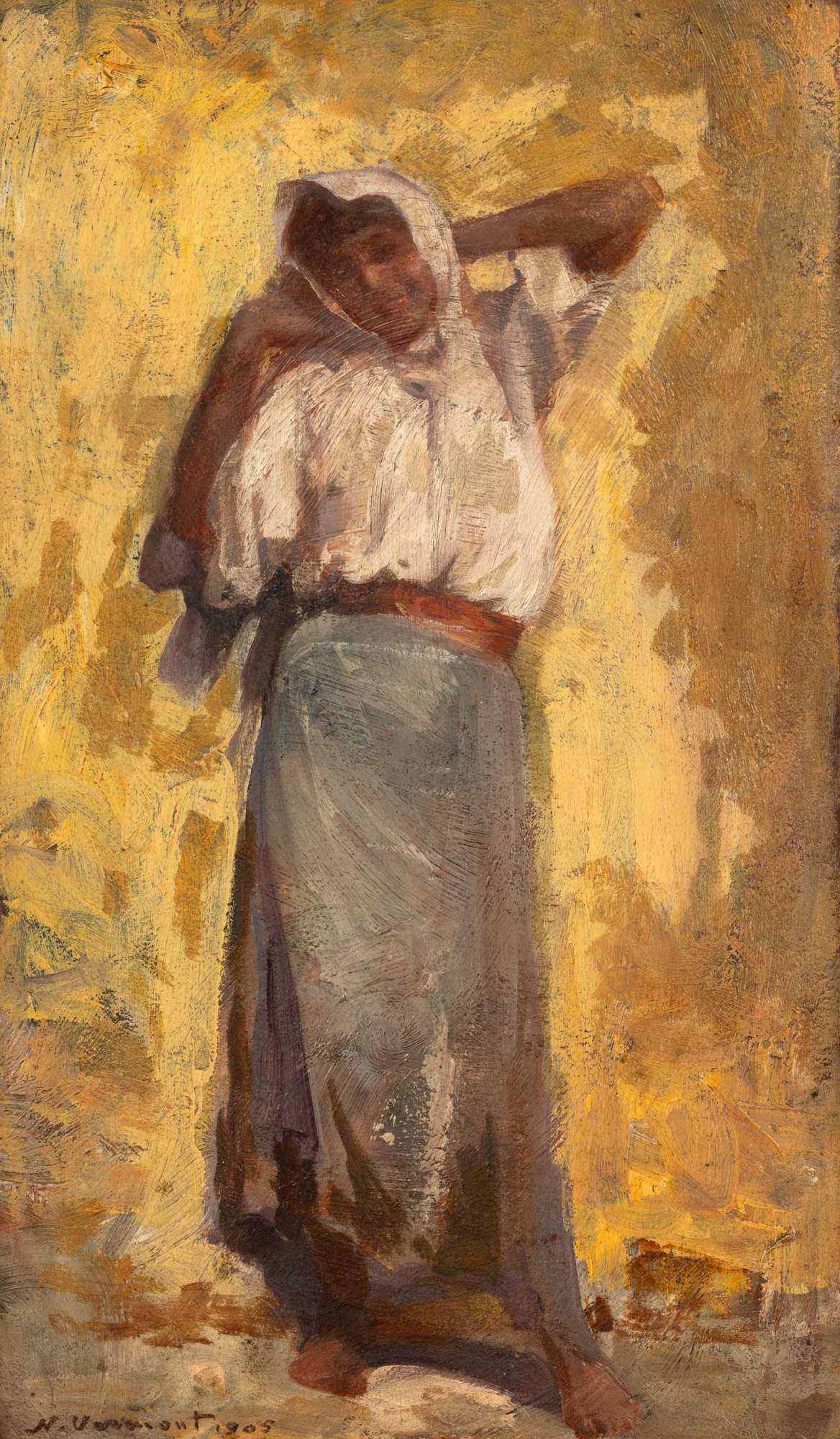 semnat și datat stânga jos, cu negru, ”N. Vermont, 1905”
