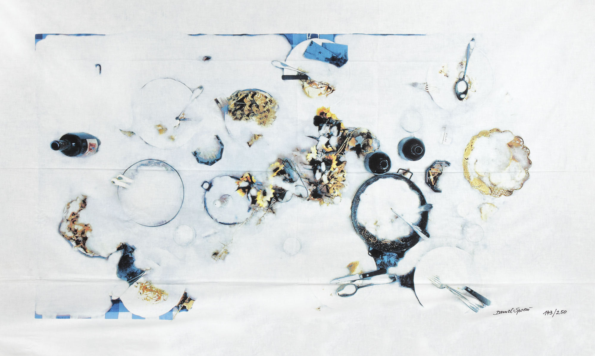 1. ștampilate, "4/10", respectiv "06/10"; 2. semnat şi numerotat dreapta jos, cu negru, "Daniel Spoerri, 143/250"; 3. ștampilat, "Attention, Daniel Spoerri, Qeuvre d`art, 143/300"; 4. ștampilat, "Attention, Daniel Spoerri, Qeuvre d`art, 143"