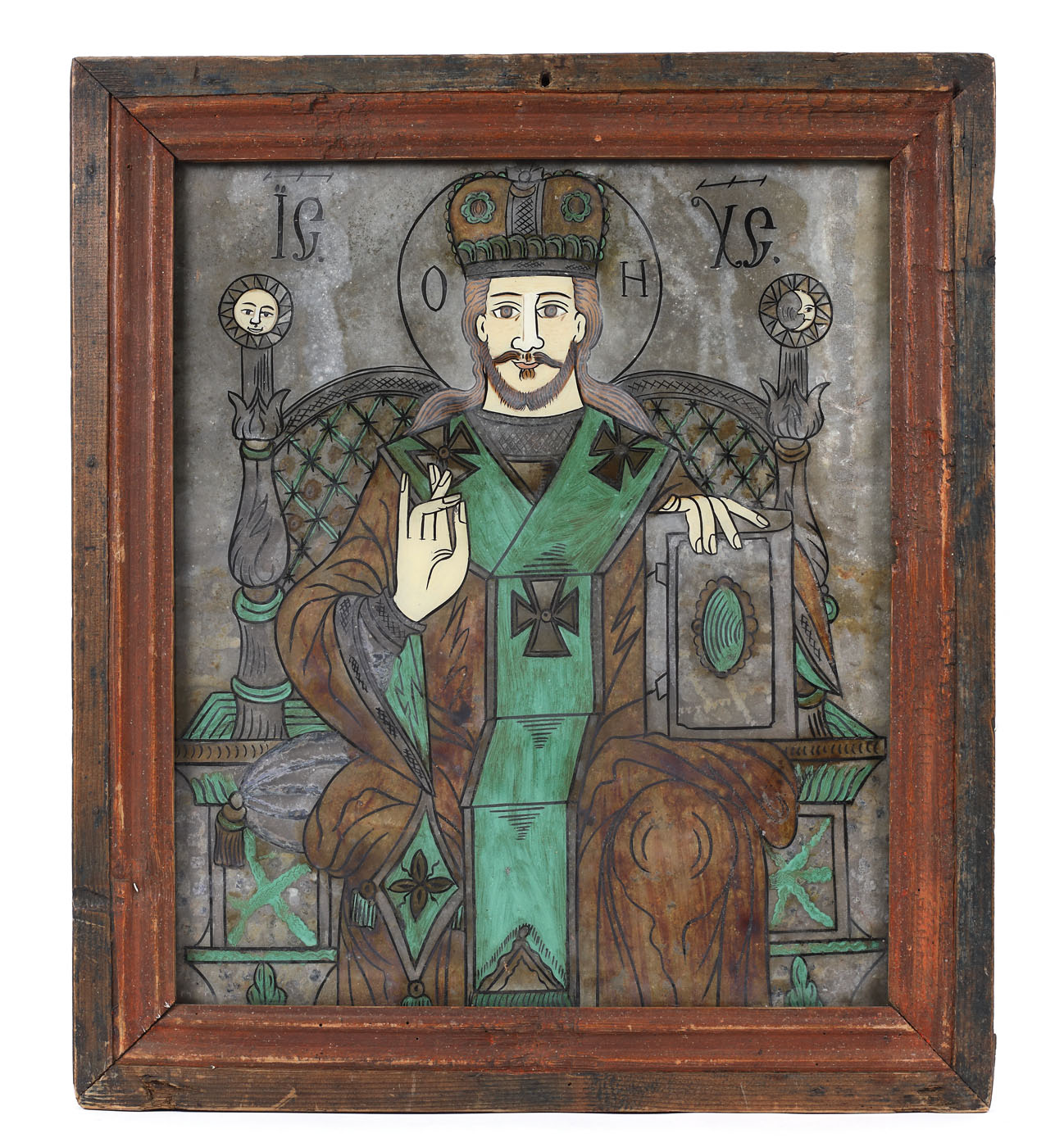 40C. Icoană pe glajă, ”Iisus Pantocrator”, atelier transilvănean (Laz), jumătatea sec. XIX