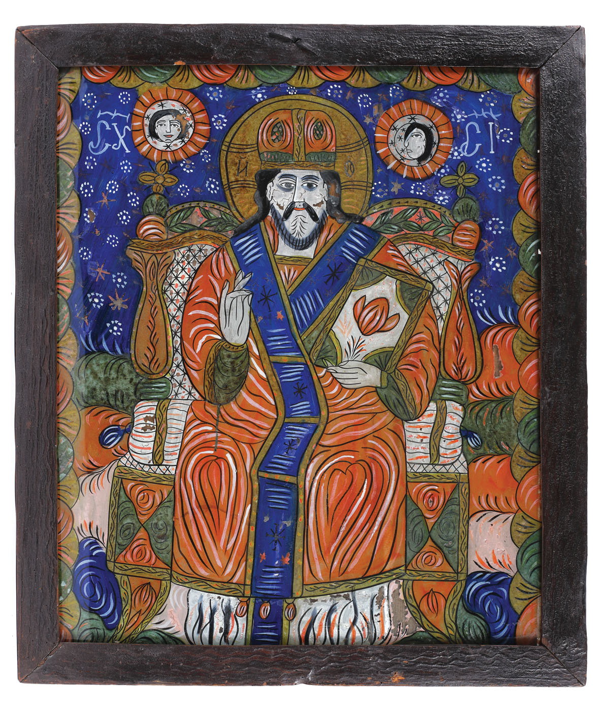39C. Icoană pe sticlă, ”Iisus Pantocrator”, atribuită lui Petru Tămaș, atelier transilvănean, cca. 1860