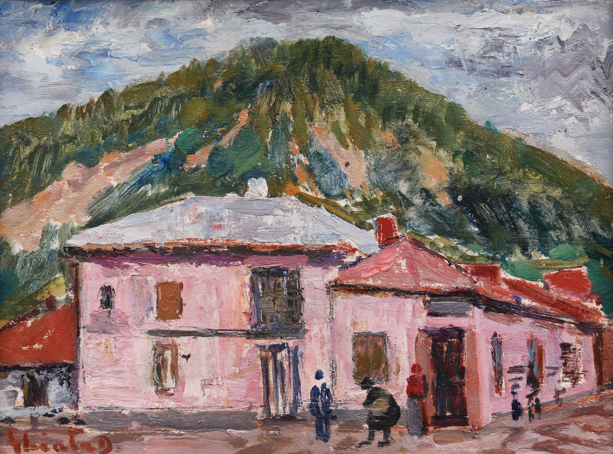 semnat stânga jos, cu brun, ”Ghiață D.”