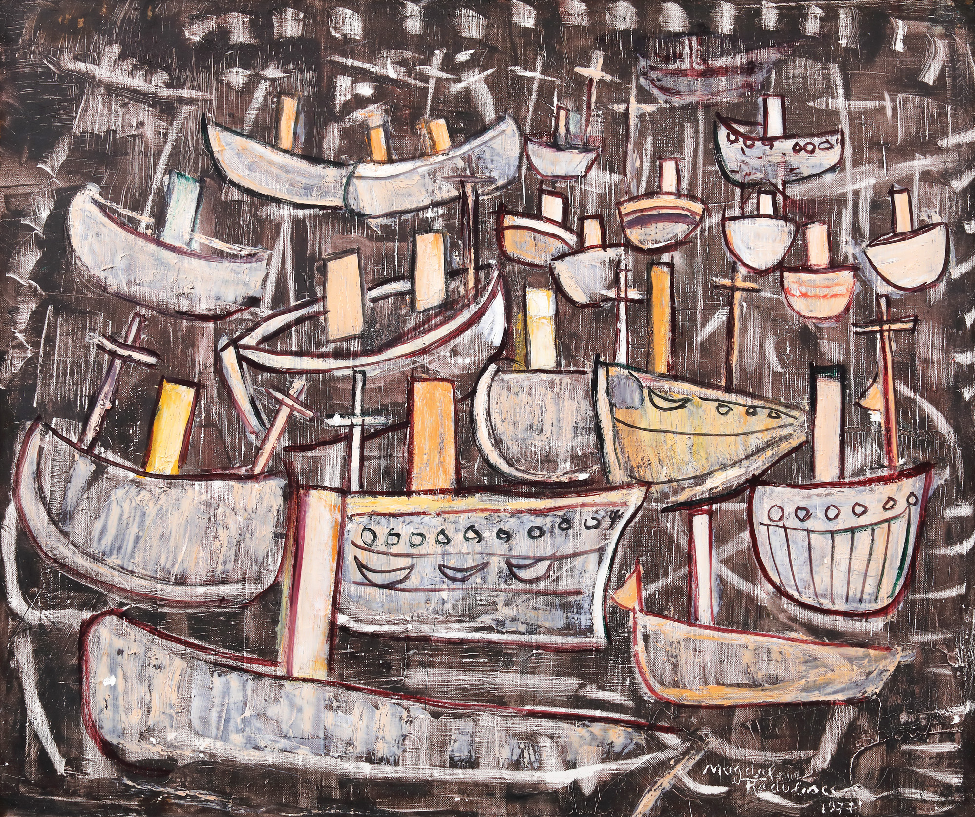 semnat și datat dreapta jos, cu alb, "Magdalena Radulesco, 1977"