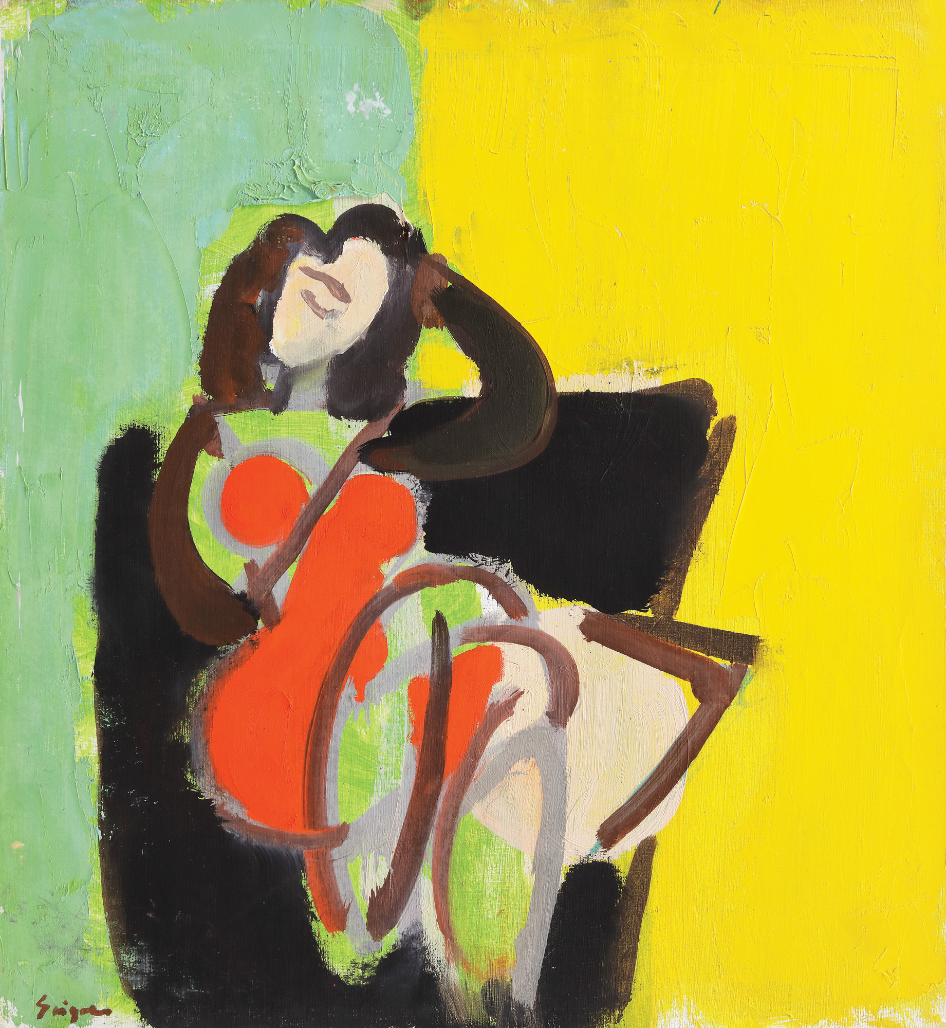 semnat stânga jos, cu brun, "Grigore"