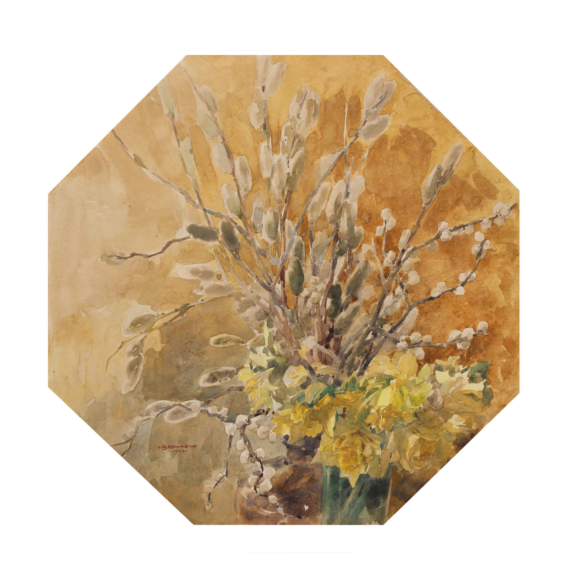 semnat și datat stânga jos, cu roșu, "I. Bednarik, 1923"