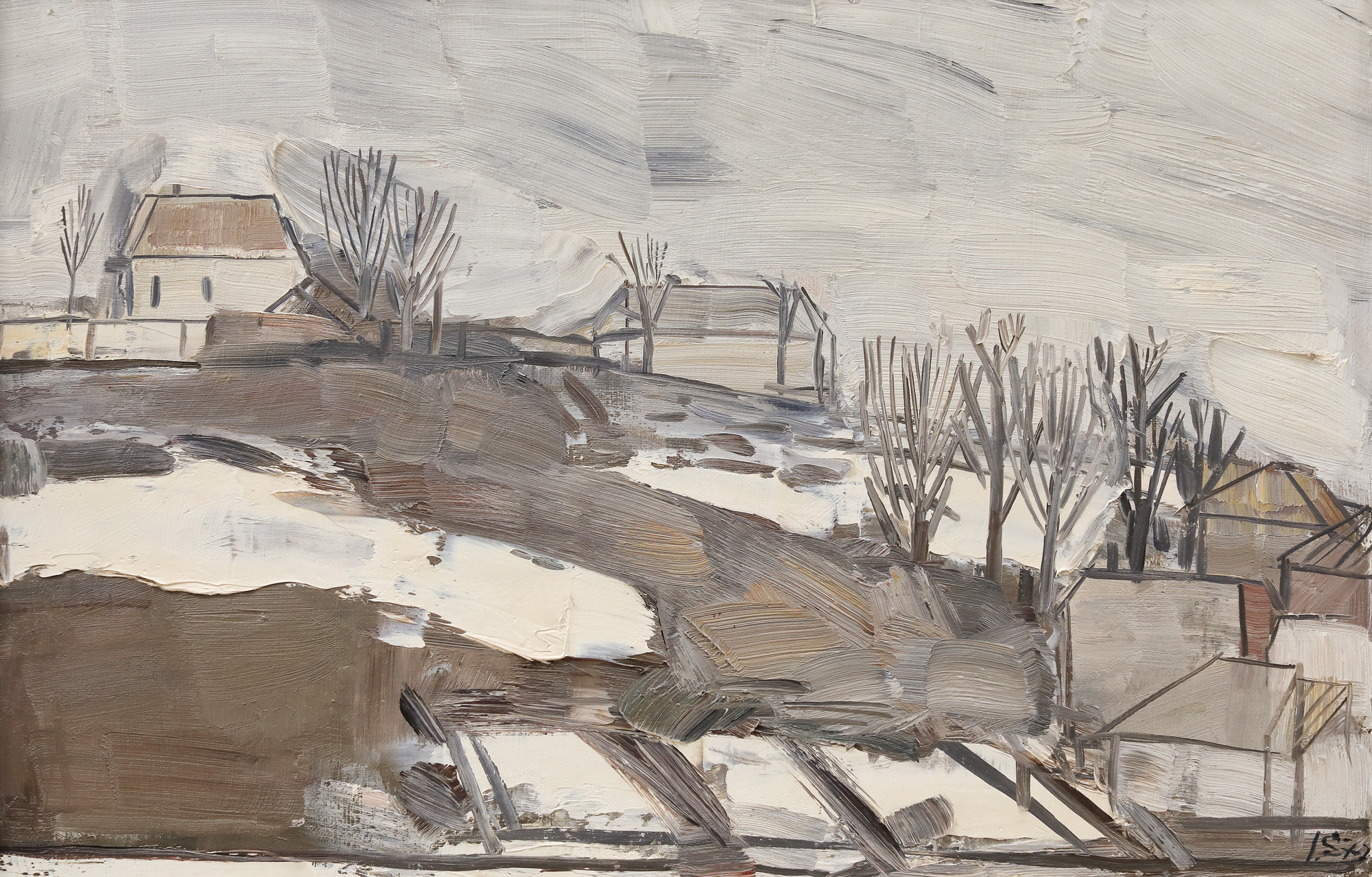 semnat și datat dreapta jos, cu negru, "I.S (19)77"
