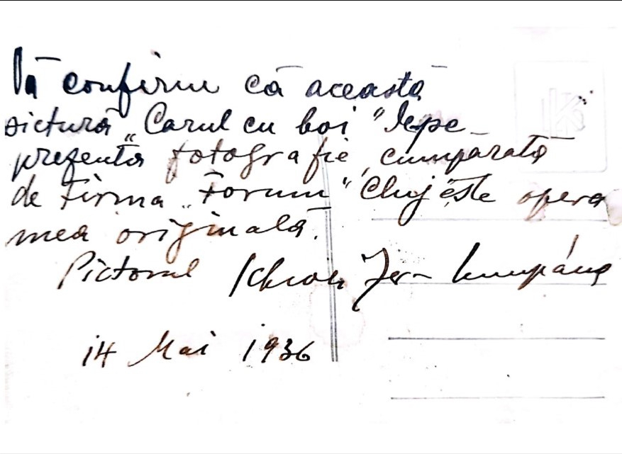 Opera vine însoțită de o fotografie care poartă înscrisul și semnătura olografă a artistului.
