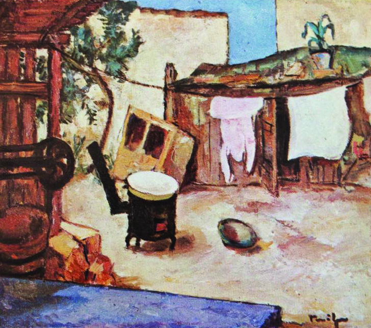 Fosta cetate antică a reprezentat un important izvor de inspirație pentru numeroși artiști în perioada interbelică datorită subiectelor și peisajelor captivante cu care își fermeca publicul. Exemplificând țărmul Mării Negre, barcazurile surprinse în larg, farurile maritime, hanurile, cafenelele, brutăriile, casele, curțile, stradelele, fântânile, așezămintele islamice, cimitirele dar și bazilicile ortodoxe, toate reprezintă imagini ale peisajului dobrogean de care creatorii săi s-au lăsat impresionați. Cele mai întâlnite motive surprinse erau scenele periferice, peisajele marine, Farul de orientare al Vapoarelor de la dig, Geamia Esmahan Sultan, Biserica Greacă, interioare ale curților sau simple colțuri de stradă. Printre artiștii care au ajuns aici și au oglindit peisajul dobrogean se numără: Dumitru Ghiață, Alexandru Satmary, Jean Alexandru Steriadi, Ion Țuculescu, Gheorghe Petrașcu, Francisc Șirato, Ștefan Dimitrescu sau Nicolae Tonitza - ultimii trei făcând parte din trio-ul de pictori din Grupul celor 4, artiști ce au oglindit în operele lor numeroase peisaje mangaliene. Tonitza descoperea Mangalia în vara anului 1925 și continuă să revină aici pană în 1930, timp în care realizează scene din natură, tema naturii însemnând pentru artist o retragere spre o altă latură a realității, mărturisind că "Suprema voluptate nu stă în diversitatea și adâncimea jocurilor sufletești pe care mi le provoacă natura, cât în aspectele pe care sufletul meu le dorește și le impune naturii". Prin trecerea anilor, tendințele creatoare ale lui Tonitza s-au îndreptat ușor și spre o tematică mai senină, cum sunt peisajele surprinse în plein-air, unde coloritul începe să dobândească un loc al său, într-un tumult de ocru, galben, terra di Siena arsă, vibrații de auriu sau cobalt. Motivele creațiilor sale rămân destul de umile, alegându-și de cele mai multe ori colțuri de mahala, interioare tărănești, case, hanuri, brutării sau curți. Fire prietenoasă, este găzduit în casa bătrânului Tefik, gazda sa din vara anului 1930, pe care îl ilustrează într-un portret în ulei dar și casa acestuia care se regăsește imortalizată în acuarelă în multe din operele sale. Din casa acestuia îi împărtășește camaradului său, Constantin Vlădescu impresiile sale despre Mangalia și îl invită să picteze alături de el. Meleagurile dobrogene l-au inspirat la crearea peisajelor periferice, redându-le ambianța și surprinzându-le esența chiar și reprezentărilor interioare ale curților de care se pare că era fascinat. Într-unul din aceste peisaje, intitulat Curte de Mahala aduce în prim plan ocrul dominant al solului dobrogean, arămiul încaperilor din lemn și azurul pal al unui cer lipsit de nori. În pictura sa, forma și spațiul sunt integrate în culoare iar liniei i se consacră valențe armonioase de lumină. Perspectiva de asemenea este surprinsă din unghiuri diferite unde elementele compoziționale pot fi observate din față, ca prin ochii artistului. Multe din aceste peisaje de inspirație mangaliană le va prezenta cu diferite ocazii, atât în cadrul Manifestaţiei renumitului Grup al celor patru, în anul 1929 cât şi în expoziţii personale de atelier, precum cea din anul 1930.