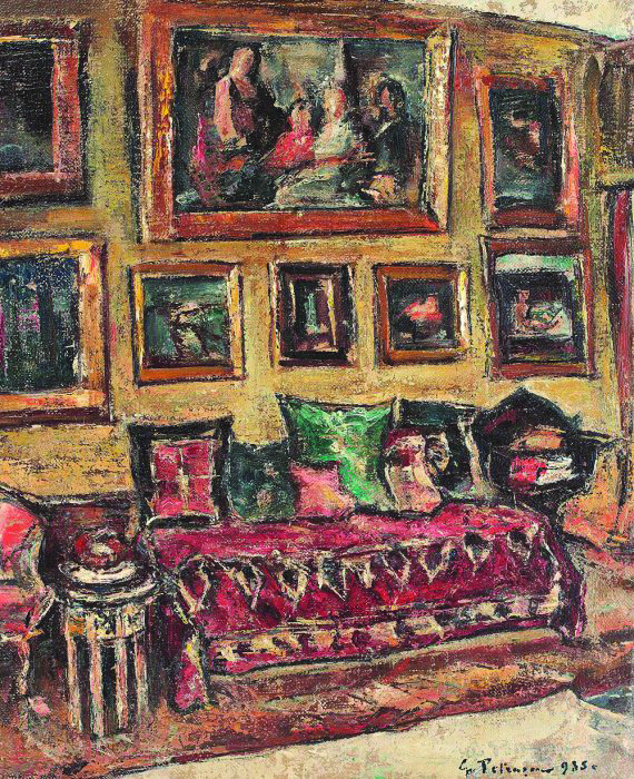 Pictura de interioare a reprezentat unul dintre genurile picturale predilecte pentru Gheorghe Petraşcu, începând cu deceniul doi al secolului XX. Preluând tema clasică a interiorului, Petraşcu reuşeşte să-i ofere o interpretare nouă, prin maniera în care aşterne culoarea şi cea a organizării spaţiului compoziţional. Atras de compoziţiile organizate într-un spaţiu restrâns, interes manifestat mai ales în naturile sale statice, pictorul a mers mai departe, realizând interioare, puţin mai cuprinzătoare decât tematica precedentă. Deşi rareori populate de prezenţa umană, interioarele sugerează totuşi existenţa acesteia, prin însufleţirea obiectelor şi a întregului spaţiu ambientat (care este de cele mai multe ori propriul atelier). De la primele instanțe luate în atelierul din Nicorești (distrus în 1917), urmate de imaginile surprinse în casa din Cometei nr. 1 (Căderea Bastiliei nr. 1, unde Petrașcu a locuit între 1916 - 1927) sau chiar la cele din ultima reședință, din strada Căpitan Demetriad nr. 1, descoperim preferința pentru interiorul tradițional și pasiunea pictorului de a se înconjura cu propria-i artă. Pereții decorați cu pânzele sale, alăturate scoarțelor, lavițelor sau a sobelor vechi, cu cahle tradiționale alcătuiesc astfel acest intimism ce definește interiorul petrașcian. Tema, pictată pentru mai bine de 15 ani, pe parcursul deceniilor 3 și 4, se regăsește pe parcursul întregii cariere, specificul fiind oferit aici de locuința-atelier. Colțul atât de piroresc avea să fie pictat în diverse variante de către Petrașcu, însă mereu va atinge lesne acea atmosferă unică a interiorului tradițional, acaparat de atmosfera artistică a pereților umpluți cu artă.