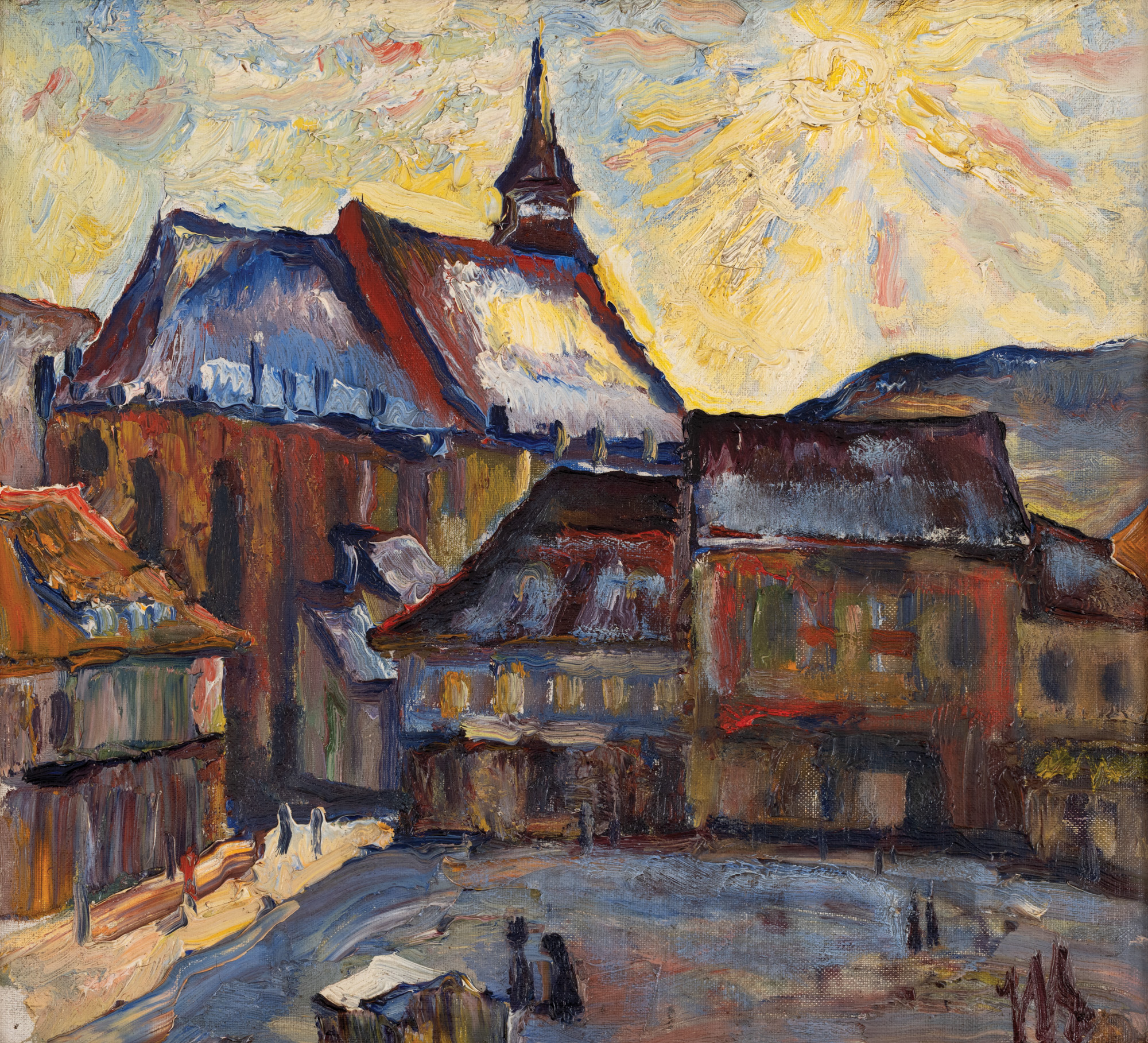 semnat dreapta jos, cu brun, în monogramă, ”HE”