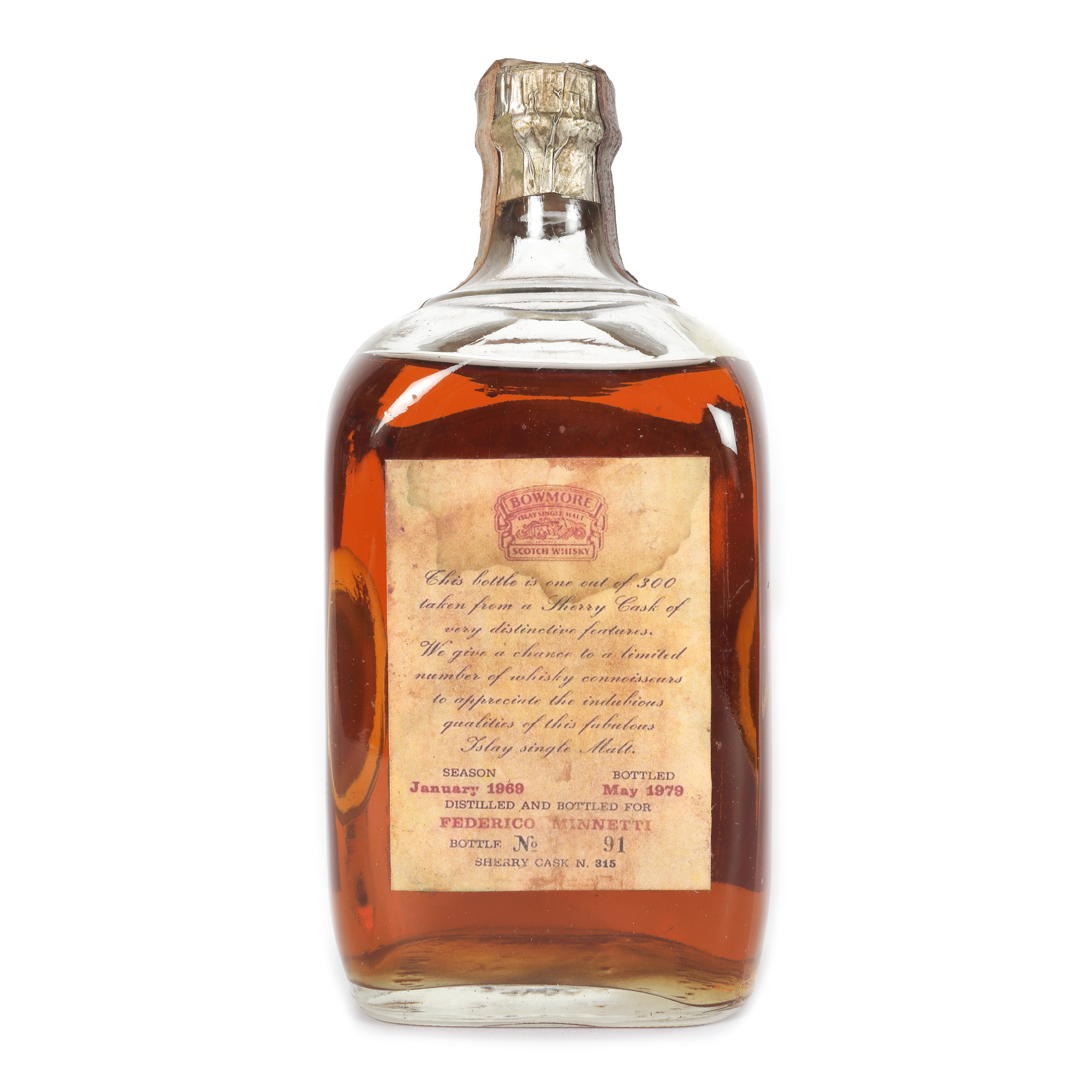 28. Bowmore Islay Bicentenary Single Malt Whisky, 1779-1979, îmbuteliat în 1979, 1st x 0,75l, ediție limitată de 300 de sticle, sticla cu nr. 91, foarte rară