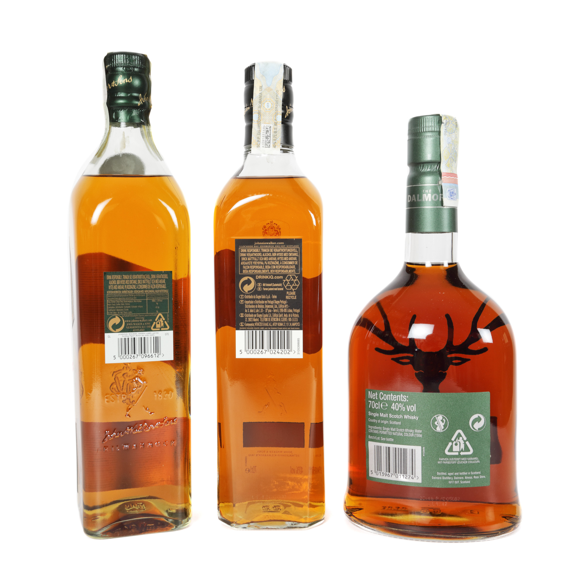 4. Johnnie Walker Black Label, 12 ani vechime, Johnnie Walker Green Label, 15 ani vechime, The Dalmore Luceo, 3st x 0,70l