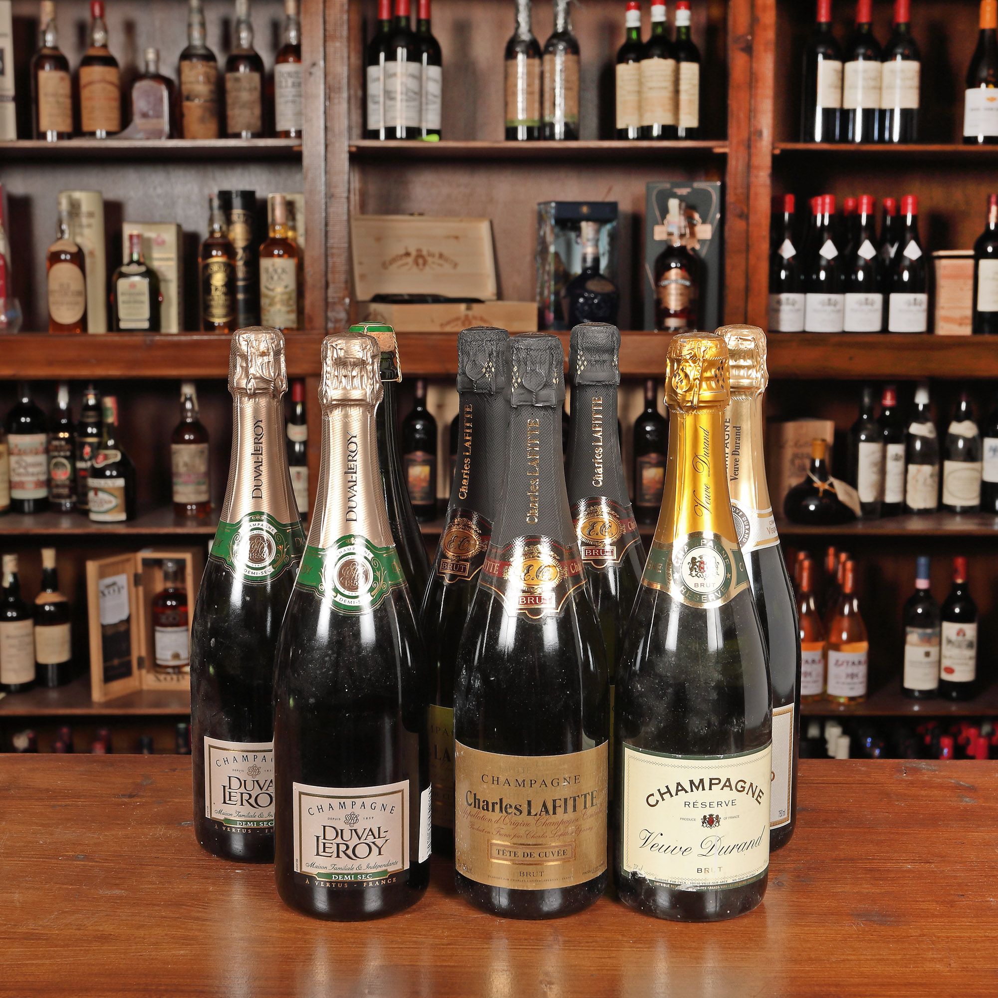 6. Lot de champagne, Charles Lafitte, Duval-Leroy, Veuve Durand, 8st x 0,75l